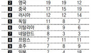 자국에서 열리지 않은 올림픽에서 처음으로 50개 이상의 메달을 딴 영국이 1908년 이후 역대 최고 순위를 차지할 수 있을지 관심이 모아지고 있다. 17일 현재 영국이 리우데자네이루 올림픽에서 딴 메달은 금 19개, 은 19개, 동메달 12개로 모두 50개. 리우 올림픽 이전에 영국이 50개 이상의 메달을 획득한 것은 자국에서 열린 두 번의 올림픽 때뿐이었다. 1908년 런던 올림픽에서는 145개(금 56, 은 51, 동 38)를 땄고, 2012년 런던 올림픽에서는 65개(금 29, 은 17, 동 19)를 챙겼다. 자국 대회를 빼고 영국이 가장 많은 메달을 딴 올림픽은 2008년 베이징 대회로 47개(금 19, 은 13, 동 15)를 획득했다. 영국은 1908년 런던 대회에서 1위를 했고, 이후로는 3위(1912년, 1920년, 2012년)가 최고 성적이었다. 하지만 1912년과 1920년에는 참가국 수가 30개도 되지 않았고, 4년 전 런던 대회 때는 204개국이 참가했지만 안방 프리미엄이 있었다. 반면 리우 올림픽에서 영국은 17일 현재 2위(금메달 기준)다. 영국은 강세 종목인 사이클 트랙에서 6개의 금메달을 땄고, 112년 만에 올림픽 종목으로 복귀한 골프에서도 금메달을 챙겼다. 금메달 17개로 3위인 중국이 강세 종목인 탁구와 다이빙 경기를 남겨 놓고 있고, 여자 배구에서도 4강에 올라 있어 영국의 2위 수성을 장담하기는 어렵다. 영국이 올림픽 막판까지 2위 경쟁을 할 수 있게 된 데는 약물 파동으로 러시아의 참가 선수 규모가 크게 줄어든 이유도 있다. 1950년 이후로 올림픽에서 영국이 러시아(옛 소련 포함)보다 순위가 앞선 것은 4년 전 런던 올림픽이 유일하다.이종석 기자 wing@donga.com}