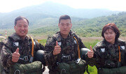 육군에 복무 중인 일가족 3명이 낙하산을 매달고 한날한시에 헬기에서 뛰어내리는 강하훈련을 했다. 일가족이 이 훈련에 동시에 참가한 건 이번에 처음이다. 특전사는 유사시 낙하산을 타고 적진에 침투하는 능력을 키우기 위해 강하훈련을 실시하고 있다. 육군에 따르면 유해일 준장(53·방위사업청 근무)과 그의 아내 홍영미 중령(52·국방정신전력원), 외아들 유준혁 이병(21·특수전사령부 경비소대)은 23일 경기 광주시 강하훈련장에서 열린 훈련에 함께 참가했다. 이들 가족은 CH-47 헬기를 타고 580m 상공에서 1∼2초 간격을 두고 차례로 뛰어내린 뒤 무사히 착지했다. 훈련 참가는 홍 중령의 제안으로 이뤄졌다. 1987년 육군 여자정훈장교 2기로 입대한 홍 중령은 다음 달 전역을 앞두고 있다. 그는 전역을 앞두고 기억에 남는 일을 하고 싶어 일가족 동반 강하를 신청했고, 특전사는 이를 받아들였다. 유 이병도 지난달 특전사에 배치되면서 가족 동반 강하 훈련에 참가하기로 결정했다. 이날 강하 훈련을 마친 유 이병은 “부모님과 특전사 생활 첫 강하훈련을 함께할 수 있어 기쁘다”며 “부모님이 군인인 만큼 2배의 군인정신으로 복무할 것”이라고 밝혔다. 홍 중령은 “가족이 함께 강하훈련을 할 수 있게 군이 허락해 줘 군 생활을 뜻깊게 마무리할 수 있게 됐다”며 고마움을 전했다. 손효주 기자 hjson@donga.com}