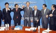 법인세 추가 감세 철회, 재벌의 일감 몰아주기 철퇴 등 최근 잇따른 ‘대기업 때리기’로 긴장 관계에 있는 한나라당 지도부와 재계가 15일 얼굴을 마주했다. 한나라당 홍준표 대표는 이날 경제5단체장을 국회로 초청해 간담회를 열었다. 홍 대표가 먼저 경제5단체에 “기업활동의 자유는 충분히 보장돼야 하나 대기업의 사회적 책임은 잊지 말아야 한다”고 밝혔다. 이어 “금융위기를 넘기면서 정부와 여당은 대기업 프렌들리 정책을 펴왔고 그 결과 글로벌 금융위기를 탈출했다”면서 “이제는 경제성장의 성과가 중소기업과 자영업자, 서민들에게 골고루 혜택이 가야 할 시점”이라고 말했다. 최근 정치권의 포퓰리즘 공약을 비판했던 허창수 전국경제인연합회 회장은 “경제계도 투명하고 공정한 경영 관행을 조속히 정착시키고 동반성장을 통해 사회 각 부분의 양극화가 해소될 수 있도록 최대한 노력하겠다”고 답했다. 1시간 20여 분 동안 진행된 간담회는 대체로 화기애애한 분위기 속에서도 한나라당과 재계의 미묘한 기싸움이 벌어졌다. 동반성장의 필요성에는 대체로 공감했지만 개별 현안을 두고 당과 재계의 견해가 갈렸기 때문이다. 손경식 대한상공회의소 회장은 “동반성장은 기업 스스로 필요성을 깨닫고 자발적으로 해야지 제도화해 일률적으로 하면 부작용이 크고 지속하기도 어렵다”며 불만을 제기하기도 했다. 가장 이해가 엇갈린 부분은 상급노동단체에 파견되는 노조전임자에 대한 임금 지원이었다. 홍 대표는 “대승적 차원에서 경제단체가 이 문제를 해결해 지급하는 게 좋겠다”고 주문했다. 전날 방문한 한국노총에서 강력한 요청을 받은 데 따른 것이다. 하지만 이희범 한국경영자총협회장은 “임금 지원은 노조전임자와 복수노조 제도를 정착시키는 데 노조 측이 협조한다는 전제로 합의한 것”이라며 부정적인 뜻을 나타냈다. 이에 홍 대표는 “몇 푼 들지도 않는데 과감히 해달라”고 말한 것으로 참석자들은 전했다. 단체장들은 “기다려 달라. 검토해보겠다”고 답했다. 또 홍 대표는 대학등록금 부담 완화의 일환으로 서민층 자녀를 위해 장학금을 조성하는 데 지원을 요청했고 경제단체 측은 “상의해 보겠다”는 뜻을 밝혔다. 이 과정에서도 양측 모두 한 치도 물러서지 않는 발언들이 오갔다. 사공일 무역협회장은 “대학 구조조정이 선행돼야 하고 전문계 고교 졸업생을 우선 채용해 불필요한 고학력 인플레를 없애야 한다”는 의견을 밝혔다. 이에 당에서 “기업이 채용 및 승진에서 학력 차별을 없애 달라”고 주문하자 재계는 “학력 차별 금지는 교육 개혁으로 풀 일이 아니냐”고 맞섰다. 재계는 정부 여당이 감세 기조를 유지할 것을 강력히 요청했다. 손경식 대한상의 회장은 “법인세율을 예정대로 인하해 조세경쟁력이 저하되지 않도록 해 달라”고 촉구했다. 이에 이주영 정책위의장은 “한나라당이 ‘MB노믹스’와 감세 기조를 버린 것이 아니다”면서 “최고세율구간에 대해서만 유예해 달라는 것”이라고 설득했다. 유승민 최고위원도 “당론으로 결정해 번복하기 어렵다”면서도 “임시투자세액공제제도와 고용창출투자세액제도 등 법인세 추가 감세 철회에 따른 보완책을 마련하겠다”고 덧붙였다. 이와 함께 재계는 기업인의 국회 소환과 개별 노사 문제에 대한 정치권의 현장 방문을 자제해줄 것을 한목소리로 주문했다.홍수영 기자 gaea@donga.com}