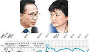 ■ ‘박근혜 대세론’ 오해와 진실 ① 李대통령 호재가 박근혜에겐 악재?이명박 대통령과 박근혜 전 한나라당 대표의 지지율이 역방향으로 치닫는 디커플링(탈동조화) 현상이 멈췄다. 이명박 정부 출범 이후 상당 기간 박 전 대표의 지지율은 이 대통령의 국정수행 지지율과 정반대 흐름을 보였다. 국민이 박 전 대표를 사실상 여권 내 야당으로 인식하고 있던 셈이다. 하지만 올해 1월 이후 양측의 지지율 등락이 대체로 같은 흐름을 보이고 있다. 이는 본보가 여론조사기관 ‘리얼미터’의 이 대통령 국정수행 지지율과 차기 대선후보 지지율 조사를 바탕으로 분석한 결과다. 리얼미터는 2008년 11월 20일 이후 매주 여론조사를 해오고 있다. ○ 잠복기→디커플링기→지지율 연동기 박 전 대표와 이 대통령의 지지율은 상관관계에 따라 크게 세 시기로 나눌 수 있다. 이는 박 전 대표와 이 대통령의 관계를 국민이 어떻게 바라보고 있느냐와 맞물려 있다. 이명박 정부 출범 뒤 박 전 대표와의 반목이 두드러지지 않던 2009년 5월 초까지는 잠복기였다. 박 전 대표는 2009년 1월 9일 여권이 추진하는 쟁점법안에 대해 “국민에게 고통을 안겨줬다”며 청와대에 직격탄을 날리기도 했지만 국민은 이 시기 박 전 대표와 청와대의 갈등을 크게 느끼지는 않은 것으로 분석된다. 다만 ‘총선 공천 파동’으로 여권 내 갈등이 극대화됐던 2008년 상반기엔 조사가 실시되지 않아 지지율 상관관계를 파악할 수 없었다.여권 내 친이(친이명박)계와 친박(친박근혜)계의 갈등이 수면 위로 부상한 2009년 5월 말부터 지난해 말까지는 디커플링 기간이었다. 광우병 파동으로 급락했던 이 대통령의 지지율이 50%대에 육박할 만큼 급등한 반면 박 전 대표 지지율은 20%대까지 추락했다. 특히 이 대통령이 지지율 최고점을 기록할 때마다 박 전 대표는 최저점을 맛봤다. 그러나 올해 1월 이후엔 디커플링 현상이 나타나지 않고 있다. 양측은 지난해 8월 청와대 회동을 통해 세종시 수정안으로 극대화됐던 갈등 관계를 봉합했다. 하지만 국민은 박 전 대표가 지난해 12월 사회보장법기본법 전면 개정안 공청회, 싱크탱크인 ‘국가미래연구원’ 출범 등으로 대외 행보를 시작한 뒤부터 비로소 화합기로 접어들었다고 인식하고 있는 것으로 보인다. ○ 여권 내 갈등이 디커플링 촉발박 전 대표와 이 대통령의 디커플링은 2009년 5월 친이계의 ‘김무성 원내대표 추대’ 움직임에 박 전 대표가 쐐기를 박으면서 시작됐다. 직전 40%를 웃돌던 박 전 대표 지지율은 당내 계파 갈등으로 인해 30%까지 떨어지며 하락세를 이어갔다. 이어 세종시 수정안을 놓고 청와대와 박 전 대표의 갈등이 첨예화한 2009년 9월 디커플링이 본격화됐다. 특히 지난해 2월 박 전 대표가 친이계와 정몽준 전 대표 등 당내 주요 정치인들의 집중 공격을 받으면서 디커플링 현상은 극에 달했다. 박 전 대표와 이 대통령의 지지율은 반대로 뛰었다. 2010년 5월에는 이 대통령이 활발한 정상 외교로 50%에 육박하는 지지율을 얻은 반면 박 전 대표는 현안에 거리를 두는 은둔 정치로 20%대의 바닥 지지율을 보였다. 그러다 올해 들어서자 삼호주얼리호 구출, 겨울올림픽 유치 등 이 대통령의 호재가 박 전 대표에게도 호재가 되고 있다. 정부의 동남권 신공항 백지화에 대한 박 전 대표의 유감 발언에도 양측의 디커플링은 한 주 이상 지속되지 않았다. ○ 외부 위기가 지지율 연동의 동인박 전 대표와 이 대통령의 디커플링은 여권에 위기가 닥쳤을 때 일시적으로 깨지는 현상도 보였다. 외부의 위기가 내부의 단결을 돕는 효과를 낳은 셈이다.디커플링 기간에도 2009년 8월 김대중 전 대통령 서거로 인한 ‘조문정국’, 천안함 폭침 사건, 지난해 6·2지방선거에서 여권의 패배 당시 박 전 대표와 이 대통령의 지지율은 각각 3주, 5주, 16주 동안 동조화를 보였다. 하지만 여권의 위기가 잦아들면 양측의 지지율은 다시 반대 방향으로 돌아섰다. 현재처럼 7개월 이상 지지율 디커플링이 나타나지 않은 것은 박 전 대표와 이 대통령의 초반 잠복기 이후 처음이다. ■ 오해와 진실 ② 안보 불안하면 박근혜 지지율 떨어진다?천안함땐 꺾였지만 연평도땐 되레 올라박근혜 전 한나라당 대표는 2006년 10월까지 대선주자 여론조사 지지율에서 줄곧 1위를 달렸다. 그러나 북한의 1차 핵실험을 기점으로 이명박 대통령에게 그 자리를 내줬다. 여성 정치인인 박 전 대표에게 한반도 정세 불안은 취약 요인이었다. 실제 지난해 3월 26일 천안함 침몰 때까지만 해도 북한의 도발에 따른 안보 불안은 박 전 대표에게 부정적으로 작용했다. 2009년 △북한의 장거리 로켓인 은하2호와 광명성2호 시험발사(4월 5일) △2차 핵실험 감행(5월 25일) △북 경비정의 서해 북방한계선(NLL) 월선(9월 4일) 등 주요 사건마다 박 전 대표의 지지율은 하락세로 돌아섰다. 하지만 지난해 8월 이후엔 안보 이슈가 터져도 박 전 대표의 지지율은 떨어지지 않고 있다. 오히려 북한의 도발 등으로 인한 ‘안보 정국’에서 박 전 대표의 지지율 상승세가 눈에 띈다.8월 9일 북한의 해안포 발사 때는 한 주 전에 비해 0.6%포인트 오른 25.7%를 기록했고 11월 23일 북한의