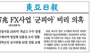 군 당국이 차기전투기(FX) 격납고 건설사업의 금품로비 의혹에 대해 전면 감사에 착수하기로 했다. 군 관계자는 31일 “한민구 국방부 장관이 FX 격납고 사업을 둘러싼 대형 건설업체들의 로비 의혹을 철저히 조사해 비리 혐의가 확인되면 수사하라고 지시했다”고 밝혔다. 최근 국방부는 FX 격납고 건설 수주에 뛰어든 A사와 B사가 현역 심사위원 일부와 그 상관을 접촉한 사실을 포착하고 현역 심사위원 40명 전원을 교체했다. 다른 관계자는 “업체들과 접촉한 현역을 포함한 군 심사위원 전원을 대상으로 향응이나 금품수수 여부를 조사할 방침”이라고 말했다. 현역 심사위원에 대한 로비 시도 여부도 조사 대상이다. FX 격납고는 2018년부터 도입될 F-35A 전투기 40대의 보관 및 정비시설로 총 사업비는 2400억 원이다. 국방부는 1일 두 업체 가운데 시공업체를 선정해 발표한다.윤상호 군사전문 기자 ysh1005@donga.com 손효주 기자}