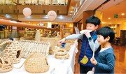 대구백화점 프라자점 11층 행사장에서 어린이들이 뻥튀기를 먹으며 짚풀공예 작품을 보고 있다. 쌀을 주제로 열리는 전시회는 26일까지 계속된다. 대구백화점 제공}