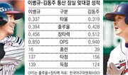 둘은 선봉장이고 고싸움의 줄패장(고 위에 올라타 싸움을 지휘하는 우두머리)이었다. 전쟁을 치를 때마다 둘은 자기 팀의 주포였고, 상대 팀에는 첫 번째 봉쇄 대상이었다. 그렇게 17년이 흘렀다. 3루 쪽 라커룸 리더가 1년 먼저 신인상을 타면서 이름을 알렸다. 이듬해 1루 쪽 라커룸 리더는 데뷔 첫 두 타석에서 연달아 홈런포를 쏘아 올리는 걸로 화답했다. 프로야구 역사상 처음 있는 일이었다. 그렇게 전쟁은 막이 올랐다. 여전히 프로야구 LG를 이끄는 ‘적토마’ 이병규(41)와 이제는 전장에서 물러나게 된 ‘두목 곰’ 김동주(39·전 두산) 이야기다. 둘은 어쩌면 팬들이 그들의 소속 팀보다 더 사랑하는 선수였고 팬들의 자부심이었다. 한쪽이 물러났으니 이제 묻자. 과연 누가 진짜 ‘잠실의 왕’인가.○ 방망이는 확실히 두목 곰 양 팀 팬들에게는 통산 기록보다 중요한 게 있다. 8개 구단 시절 해마다 잠실에서 열리는 프로야구 경기 4분의 1은 두 팀의 맞대결이었고, 그 경기 모두 양 팀 팬들에게는 숙명의 라이벌전이었다. 두산은 김동주와 함께 웃었다. 두산은 ‘김동주의 전성시대’였던 1998∼2011년 맞대결 전적 156승 5무 99패(승률 0.612)로 우위를 점했다. 김동주는 잠실에서 홈런을 통산 131개(역대 1위) 쳤다. 이 중 LG 투수가 맞은 건 39개(29.8%). 김동주는 잠실에서 LG만 만나면 평소 잠실 경기 때보다 20% 가까이 홈런 비율이 늘었다. 잠실 라이벌전에서 김동주의 통산 OPS(출루율+장타력)는 0.940. 21세기 최강 팀 삼성 팬들조차 공포에 떨게 했던 브룸바(41·전 현대)의 통산 성적과 같다. 김동주는 이 성적을 ‘타자 지옥’ 잠실에서 냈다. 물론 이병규도 맞대결 통산 타율이 0.337이나 되지만 전체적으로는 김동주가 한 수 위다. LG 팬들이 틈만 나면 우타 거포를 갈망하는 데 ‘김동주 트라우마’가 없다면 거짓말이다.○ 팀에는 더 확실한 적토마 2012년 이후 LG는 잠실 라이벌전에서 28승 1무 22패(승률 0.560)로 역전에 성공했다. ‘잠실의 파괴자’ 김동주가 전력에서 이탈한 뒤였다. 그러는 사이 이병규도 LG가 두산을 밀어내듯 ‘잠실의 왕’ 자리에 올랐다. 2013년 이병규는 응원가 가사 그대로 ‘L∼G의 이병규’였다. 자기 이름 석 자보다 팀 이름이 앞에 오는 ‘캡틴’이었다. 시즌 초반 부상으로 퓨처스리그(2군)에 머물던 이병규는 후배들이 식사 시간 부족을 호소하자 앞장서 이 문제를 해결하기도 했다. 그가 없이 뛰던 LG의 1군 선수들은 “이병규 선배만 돌아오면 우리가 진짜 ‘UTU(올라갈 팀은 올라간다)’ 주인공이 될 것”이라며 버텼다. 이병규는 복귀 후 최고령 타격왕(0.348)에 올랐고, LG는 11년 만에 포스트시즌에 진출했다. 이병규는 시즌 뒤 25억 원에 LG와 자유계약선수(FA)로 계약했다. 데뷔 때 둘의 기대치는 엇비슷했다. 통산 성적만 놓고 보면 김동주가 낫다는 말에 무게감이 실린다. 하지만 왜 이렇게 대조적인 말년을 맞이하게 된 걸까. 팀이 스타를 필요로 하는 것처럼 스타도 팀을 필요로 한다. 김동주가 이 사실을 깨달았을 때는 이미 너무 늦은 다음이었는지 모른다. 황규인 기자 kini@donga.com}