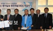 북미, 오세아니아, 아시아 지역의 10여 개 한인 방송사로 구성된 사단법인 세계한국TV방송연합회가 동아일보가 추진하는 종합편성채널 사업에 긴밀히 협력하기로 했다. 세계한국TV방송연합회 윤영수 이사장과 회원인 7개 한인 방송사 대표 등 10명은 6일 서울 종로구 세종로 동아미디어센터를 방문해 안국정 동아일보 방송설립추진위원회 공동위원장과 업무협약을 위한 양해각서(MOU)를 체결했다. 이날 체결된 협약에 따라 동아일보가 추진하는 종합편성채널은 세계한국TV방송연합회에 속한 한인 방송사를 통해 현지 교민들에게 고품격 콘텐츠를 제공할 수 있게 된다. 또 재외국민 참정권 시대를 맞아 한국 사회와 교민 사회의 교류를 활성화하고, 상호 알권리를 충족시킬 수 있는 다양한 활동에 협력할 계획이다. 세계한국TV방송연합회는 10월 미국 뉴욕 MKTV, 캐나다 ALL-TV, 오스트레일리아 TV KOREA, 뉴질랜드 WTV 등 10개 한인 방송사로 발족했으며 몽골TV방송국 등 세계 10여 개 한인 방송사가 가입해 있다. 동아일보는 이에 앞서 미국 로스앤젤레스, 캐나다, 중국 옌볜(延邊) 등 교민이 많은 지역의 한인 방송사와도 종합편성채널 사업 협력을 위한 MOU를 체결한 바 있다.홍수영 기자 gaea@donga.com}