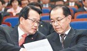 한나라당 친박(친박근혜)계와 쇄신파는 말을 아꼈고 ‘구주류’가 된 친이(친이명박)계 의원들은 차례로 발언대에 올라 강하게 의견을 폈다. 25일 7·4전당대회 경선 ‘룰’ 개정 방안을 토의하기 위해 열린 한나라당 의원총회와 의원-원외당협위원장 연석회의 모습이었다. 이날 당 비상대책위원회는 △당권-대권 분리 규정 완화 △대표-최고위원 분리 선출 △선거인단 확대 등에 대한 설문조사 결과를 발표했다. 가장 쟁점이 됐던 당권-대권 분리 규정은 현행 유지가 근소하게 앞섰다. 대선에 출마하려면 대선일 1년 6개월 전에 당 대표를 사퇴하도록 한 현행 규정에 대해 찬성이 50.9%, 완화가 47.3%였다. 그러나 친이계 측은 이런 결과에 상관없이 대권-당권을 통합해 당 리더십을 회복해야 한다고 목소리를 높였다. 김영우 의원은 “여당은 힘 있는 대표가 필요하다”면서 “설문조사만 갖고 최종 결론을 내릴 수 없다”고 주장했다. 김금래 의원은 “(현행 당헌·당규에 따른) 당권-대권 분리 기간인 1년 6개월간 ‘아바타’ 대표로 (활동)한다는 건 너무 길다”고 주장했다. “‘불임대표’를 만들어서는 안 된다”(신지호 의원)는 발언도 나왔다. 이에 대해 친박계는 별다른 대응을 하지 않았다. 당 대표와 최고위원을 동시에 선출하는 현행 규정에 대해선 유지와 분리 선출이 각각 60.3%, 38.2%로 나타났다. 선거인단 확대는 찬성이 65.2%로 대체적인 공감대가 형성됐다. 이 중 책임당원(14만 명)으로 한정하자는 의견이 43.4%, 유권자의 0.6% 수준인 23만 명까지 늘리자는 의견이 30.3%로 나타났다. 이 조사는 당 소속 의원과 당협위원장 253명을 대상으로 실시했으며 165명(응답률 65.2%)이 답했다. 정의화 당 비상대책위원장은 기자들과 만나 “당권-대권 분리 규정은 바뀔 가능성이 없어 보인다”면서 “‘분리하자’는 의견이 70∼80%는 나와야 가능할 텐데 지금과 같은 설문조사 결과로는 힘들 것”이라고 말했다. 이에 따라 7·4전대는 현행 당헌·당규를 적용하되 선거인단 규모만 대폭 늘리는 선에서 치러질 가능성이 높아졌다. 박 전 대표가 19일 황우여 원내대표와의 회동에서 밝힌 의견과 같다. 이날 박 전 대표, 정몽준 전 대표, 이재오 특임장관 등은 의총에 불참했다. 정 비대위원장은 “비대위는 늦어도 27일까지 ‘끝장토론’을 벌이고 30일 오후 9시까지 결론이 나지 않으면 당헌·당규 개정 방안을 표결에 부칠 것”이라고 말했다.홍수영 기자 gaea@donga.com}