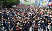 전국민주노동조합총연맹(민노총)이 10일 서울 여의도에서 조합원 3000여 명이 참석한 집회를 개최했다. 신종 코로나바이러스 감염증(코로나19) 확산을 막기 위해 서울시가 도심 집회를 금지한 3월 1일 이래 최대 규모 인원이 집회에 참석했다. 민노총은 10일 오후 2∼5시 여의도공원 앞에서 ‘중대재해기업처벌법 우선입법 촉구 결의대회’를 열었다. 집회 참가자들은 약 360m 구간 3개 차로에서 1m 거리도 떨어지지 않은 채 밀집해 있었다. 서울시는 3월 1일부터 코로나19 확산을 막기 위해 광화문광장 등에서 집회를 금지해왔다. 영등포구도 여의도 국회 앞 의사당대로와 산업은행 앞 여의공원로 등에서 집회를 열지 못하도록 제한했다. 이날 민노총이 집회를 개최한 여의도공원 앞은 집회 금지구역에 포함되지 않는다. 영등포구 관계자는 “집회 승인은 구청이 아닌 경찰이 주최 측의 신고를 받은 뒤 승인 여부를 결정한다”며 “영등포구보건소가 민노총에 집회 자제를 요청하는 공문을 보냈지만 그대로 개최했다”고 설명했다. 그 대신 보건소는 현장에서 생활 속 거리 두기 지침을 지켜 줄 것을 당부했다고 한다. 경찰 관계자는 “(민노총) 집회를 금지할 법적인 근거가 없었다. ‘마스크를 착용하고 충분히 거리를 두고 앉아야 한다’는 수칙을 전달했다”며 “전광훈 목사가 이끄는 범국민투쟁본부의 2월 광화문 집회는 시가 금지한 구역에서 열려 비교 자체가 어렵다”고 했다. 감염병예방법에 따르면 보건복지부 장관과 시도지사, 시장 등 지방자치단체장은 감염병 예방을 위해 집회를 제한 또는 금지할 수 있다. 금지 조치를 위반하면 300만 원 이하의 벌금에 처한다. 다만 이는 집회 및 시위에 관한 법률(집시법)에 따르지 않아 경찰이 해산 명령을 하거나 집회 신고 자체를 막을 순 없다. 고도예 yea@donga.com·박창규 기자}