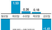 "일요일 밤만 되면 마음이 조마조마 해요." 증권사에 근무하는 김모 씨(33)는 일요일 오후가 되면 어김없이 사무실에 나와 자리를 지키며 주말 동안의 글로벌 경제뉴스를 정리한다. 9월 마지막 주 1,650선까지 주저앉는 등 8월 이후 코스피의 약세도 문제지만 특히 월요일마다 코스피가 크게 출렁이면서 휴일이지만 사무실에 나오는 횟수가 늘어났다. 김 씨는 "월요일이면 미국과 유럽 증시 하락 등 주말 동안의 우울한 뉴스가 한꺼번에 반영이 돼 하락을 면치 못하는 상황이 자주 있다보니 일요일부터 긴장이 된다"며 "개천절 휴장 직후인 4일 시장이 어떻게 반응할지 걱정"이라고 말했다. 증시가 '주말 울렁증'에 걸렸다. 주말을 앞둔 금요일과 주말 직후인 월요일에 유독 맥을 못 추고 있다. 미국 신용등급 강등 뒤 첫 거래일인 8월8일부터 9월30일까지 8주간의 코스피의 요일별 평균 등락률을 조사한 결과, 월요일과 금요일엔 주가가 크게 떨어지는 반면 화요일엔 상승세를 보였다. 8월 8일 이후 광복절과 추석연휴를 제외한 6차례의 월요일 중 주가가 하락한 날은 5차례. 8월 5일(현지시간) 스탠다드앤푸어스(S&P)가 기습적으로 미국 신용등급을 강등한 이후 첫 거래일인 8일에 전날보다 3.82% 떨어진 것을 시작으로 8월22일(-1.96%), 9월 5일(-4.39%), 19일(-1.04%), 26일(-2.64%) 등 계속해서 주가가 크게 떨어졌다. 8월 29일 하루만 코스피가 앞서 이틀 연속 상승한데다 미국 다우존스산업평균지수가 1.21% 상승 마감한 덕에 겨우 하락을 면했다. 월요일의 평균 등락률은 -1.84%나 됐다. 일주일을 마무리하는 금요일도 평균 하락률이 -1.41%로, '검은 금요일'의 공포를 확인시켰다. 8차례의 금요일 중 5차례 주가가 떨어져 하락확률 자체는 월요일보다 낮았지만 하락폭은 더 컸다. 8월 이후 폭락장에서 8월 19일(-6.22%), 9월 23일(-5.73%)처럼 엄청나게 추락해 투자자를 공포에 몰아넣은 날이 모두 금요일이었다. 반면 월요일의 낙폭이 컸던 탓인지 화요일은 평균 1.53% 상승했다. 상승확률도 커 7번 중 2번의 화요일을 제외하고는 모두 반등에 성공했다. 수요일과 목요일은 약보합세로 각각 평균 등락률이 0.26%, 0.18%를 나타냈다. 최근 코스피시장에서는 월요일에 사서 목요일에 파는 것이 가장 현명한 투자전략이었던 셈이다. 코스피의 주말 울렁증에는 국제통화기금(IMF)·세계은행(WB) 연차총회 등 글로벌 경제이벤트가 주말에 집중됐던 영향도 적지 않다. 일각에서는 코스피를 지배하는 투자자들의 불안심리가 이 같은 '주말 울렁증'을 만들어내고 있다고 지적도 나온다. 금요일에는 주말 동안 발생할 수 있는 불확실성에 대한 위험을 피하려고 적극적인 매수에 나서지 않고 월요일에는 주말 내내 국내외 경제뉴스에 불안감을 키운 투자자들이 '팔자'에 나서 하락세를 연출한다는 것. 박연채 키움증권 리서치센터장은 "최근 글로벌 금융불안이 확산되면서 주말을 앞두고는 일단 보유주식을 청산하는 상황이 반복되고 있다"고 말했다.장윤정기자 yunjung@donga.com}