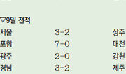 “골키퍼도 없고, 감독도 없고.”9일 상주 상무와 FC 서울의 프로축구 정규리그 경기가 열린 서울월드컵경기장. 상주는 이날 있어야 할 두 명이 없었다. 한 사람은 골키퍼, 그리고 또 한 사람은 감독이었다.승부조작 후유증 때문에 상주는 소속팀 골키퍼 4명이 모두 이날 출전할 수 없었다. 3명이 검찰에 소환됐고 남은 골키퍼는 권순태 한 명뿐이었다. 그런데 권순태마저 2일 대구 FC와의 경기 중 경고 누적으로 퇴장당해 이날 출전이 불가능했다. 수비수인 이윤의가 임시로 골키퍼 장갑을 꼈다.경기 중 필드 플레이어가 장갑을 끼는 경우는 이전에도 종종 있었다. 상주는 2일 대구전에서도 경기 중 권순태가 퇴장당하자 필드 플레이어가 대신 골키퍼 장갑을 꼈다. 하지만 경기 전 골키퍼가 없어 필드 플레이어가 처음부터 골문을 지켜야 하는 상황은 1983년 프로축구가 출범한 이후 처음이다. 이날 후보 골키퍼로 등록한 김범준은 미드필더다.이와 함께 이수철 상주 감독의 모습도 보이지 않았다. 이 감독의 빈자리에는 김태완 코치가 앉아 있었다. 이 감독은 참고인 자격으로 군 검찰에서 조사를 받고 있다. 상주 관계자는 “경기 전 군 검찰에서 이 감독에게 입건된 선수 9명과 관련해 조사를 받으러 오라는 통보가 왔다”고 말했다. 그는 “군 검찰에서 조사를 받느라 구단에서도 연락이 되지 않는다. 선수 관리 소홀로 조사를 받고 있는 것 같다”고 걱정했다.상주는 승부조작 후유증을 심하게 앓고 있는 대표적인 구단이다. 지난해까지 광주 상무 시절과 이전 소속팀에서 일부 선수가 저지른 승부 조작으로 모두 9명이 군 검찰에 구속 또는 불구속 입건됐다. 선수단의 20%에 해당된다. 시즌 초반 돌풍을 일으켰던 상주였지만 승부조작 사건이 불거진 이후 5연패의 늪에 빠졌다. 이날 상주는 임시 골키퍼 이윤의가 선방하고 김정우의 선제골로 앞서 갔지만 후반에만 3골을 허용하며 서울에 2-3으로 역전패했다. 포항 스틸러스는 이날 1골 2도움으로 맹활약한 김재성과 모따, 황진성의 연속 골에 힘입어 소속 선수의 승부조작 가담과 성적 부진으로 왕선재 감독이 물러난 대전 시티즌을 7-0으로 꺾었다. 7골은 올 시즌 한 팀 최다 골이며 7골 차는 역대 최다 점수차 타이기록이다.전남 드래곤즈는 10일 광양에서 열린 수원 삼성과의 홈경기에서 0-1로 뒤지다 후반에만 세 골을 몰아 넣으며 3-1로 역전승했다. 전남은 8승 4무 5패(승점 28점)로 3위 제주 유나이티드(8승 4무 5패·승점 28점)와 승점과 골 득실차(+5)는 같지만 다득점(전남 20, 제주 28)에서 밀려 4위를 기록했다.김동욱 기자 creating@donga.com}