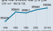 광복 이듬해인 1946년 말 9만4229km²였던 우리나라 국토 면적은 지난해 말 10만284km²로 6.4% 증가했다. 여의도 크기(2.9km²) 2088배의 땅이 늘어난 것이다. 토지 장부가 전산화되지 않았던 시절 면적에서 빠졌던 땅들이 추가로 집계된 영향이 있긴 하지만 결정적으로 국토 면적을 키우는 데 기여한 것은 간척사업이었다. 13일 한국국토정보공사에 따르면 1970년 말 599km²였던 전국의 간척지는 2010년 867km²로 44.7% 늘었다. 대표적으로 1991년 첫 삽을 뜬 새만금 간척사업은 전북 부안군과 군산시 사이의 바다를 세계에서 가장 긴 33.9km의 방조제로 막아 명품 도시와 산업단지, 농업용지 등을 조성하고 있다. 간척지 규모는 409km²로 서울 면적의 약 3분의 2 수준이다. 이곳에는 한중 경제협력특구가 조성될 예정이다. 광복 직후 식량난을 해결하기 위해 농업용지로 간척지가 조성됐지만 이제는 중국, 일본 등 외국 기업의 공장이 들어설 산업용지로 개발되고 있는 것이다. 이처럼 간척지 규모는 크게 늘었지만 국토의 상당 부분을 차지하고 있는 임야와 하천의 면적은 크게 줄었다. 국토의 뼈대인 산과 들로 구성된 임야의 면적은 지난해 말 기준 6만4081km²로 국토의 63.9%였다. 이는 1970년대 말(6만6459km²)보다 약 3.6% 감소한 것이다. 각종 개발사업으로 임야의 면적이 계속 줄어든 것이다. 하천 면적은 더 많이 줄었다. 1970년 말 3806km²였던 하천 면적은 지난해 말 2849km²로 약 25.1% 감소했다. 정부가 강물의 범람을 막기 위해 제방을 쌓아 물길을 정비해 너저분하게 뻗어 있던 하천이 줄어든 것이다.조은아 기자 achim@donga.com}