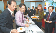 도루묵 맛탕, 오징어 도넛, 송어찰떡 완자, 게살덮밥 소스…. 강원도 환동해본부가 도내에서 많이 잡히는 수산물로 만든 새로운 먹을거리를 개발했다. 도내 수산물의 소비 확대와 부가가치 제고, 수출 증진은 물론이고 2018 평창 겨울올림픽 특수를 겨냥한 것. 2013년 3개 어종, 6개 음식을 개발한 데 이어 지난해 4개 어종, 9개 음식을 개발하고 시식회를 잇달아 열어 반응을 점검하고 있다. 4일 오전 강원도청 브리핑룸에서 공무원 및 취재진을 대상으로 열린 시식회에선 대체로 호평을 받았다. 가공을 통해 생선의 비릿한 맛이 사라졌고 생선 특유의 쫀득하고 고소한 맛은 살아있다는 평가가 주를 이뤘다. 시식회에 직접 참석한 최문순 강원도지사는 “다 맛있지만 특히 도루묵알 리소토가 입맛을 사로잡았다”고 말했다. 이 밖에 오징어와 도넛가루를 이용해 만든 오징어 도넛, 구이나 찜요리로 주로 쓰이는 도루묵을 먹기 편하게 만든 맛탕도 인기를 끌었다. 이 음식은 청소년과 젊은층의 간식거리로 적합할 것이라는 반응을 얻었다. 환동해본부는 지난달 22일 강릉시 세인트컨벤션홀에서 개최한 시식회에서도 비슷한 반응을 얻었다. 환동해본부는 시식회 평가 자료를 분석하는 한편 산학연관 전문가로 구성된 ‘강원수산식품 세계화 전략추진협의회’의 평가와 보완을 거쳐 세계인의 입맛에 맞는 음식으로 보완해 육성할 계획이다. 또 올해부터 2017년까지 양미리 문어 가자미 등 3개 어종을 이용해 15개 음식을 개발하기로 했다. 환동해본부는 우수한 평가를 받은 음식에 대해 일반인을 대상으로 요리기법을 전수할 방침이다. 전영하 강원도 환동해본부장은 “맛에 대해서는 긍정적인 반응을 얻고 있지만 원재료 단가가 다소 높은 편이어서 단체급식 등에 활용되기에는 어려운 점이 있다”며 “우선 호텔이나 대형 음식점 등을 대상으로 보급을 타진할 예정”이라고 말했다.이인모 기자 imlee@donga.com}