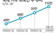최근 10년 동안 한국에 사는 외국인은 2배 이상으로 늘었지만 외국문화에 대한 우리나라의 개방성은 세계 ‘꼴찌’ 수준에서 벗어나지 못하고 있어 개선이 시급하다는 지적이 나왔다. 현대경제연구원은 8일 ‘국내 다문화 현상의 특징과 시사점’ 보고서에서 “최근 외국인 유학생과 이주노동자, 국제커플 등이 크게 늘고 있으나 이들을 제대로 포용하지 못해 사회적 부작용이 심화되고 있다”고 밝혔다. 법무부의 집계에 따르면 올해 9월 말 현재 우리나라에 체류하는 외국인은 약 115만 명으로 2000년 말 49만 명보다 2배 이상으로 늘었다. 특히 외국인 유학생과 이주노동자의 급증이 눈에 띈다. 9월 말 현재 주한 외국인 유학생은 8만2000명에 이르러 2003년 말 9700명의 10배 수준으로 급증했다. 2004년 고용허가제 시행 이후 외국인 고용자도 크게 늘어 9월 말 현재 55만여 명의 외국인 노동자가 한국에 살고 있다. 하지만 우리나라의 다문화 포용성은 몇 년째 세계 꼴찌 수준이다. 스위스 국제경영개발원(IMD)이 조사한 한국의 외국문화 개방도 순위는 지난해 전체 55개국 중 55위, 올해는 57개국 중 56위였다. 이 보고서는 외국인 급증과 함께 적응하지 못하는 외국인도 늘면서 사회 문제를 야기하고 있다고 지적했다. 국제결혼 커플의 이혼 급증이 대표적 사례다. 국제결혼은 지난해 우리나라 전체 결혼에서 11%(3만6000여 건)를 차지할 정도로 보편화됐다. 하지만 2004년 전체 이혼의 2.4%에 그쳤던 국제결혼 커플 이혼은 지난해 9.7%로 늘어났다. 문화적 차이와 경제적 갈등이 주요 원인이었다. 임우선 기자 imsun@donga.com}