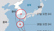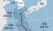 제12호 태풍 ‘할롤라’가 한반도를 향해 빠르게 북상하고 있다. 26일 제주도 해상을 거쳐 27일에는 부산 앞바다까지 올라올 것으로 보인다. 할롤라는 당초 태평양 중앙에서 만들어진 허리케인이 날짜변경선을 넘어 북서쪽으로 넘어오면서 강한 태풍으로 전환된 것. 1997년 허리케인 ‘올리와’ 이후 18년 만에 한국에 직접적인 영향을 미치는 허리케인이다. 24일 기상청에 따르면 할롤라는 최대풍속 초속 37m(오후 3시 기준)의 강한 소형급 태풍으로 발전해 일본 오키나와 동남쪽 바다를 지나고 있다. 북서쪽으로 계속 이동해 26일 오후 3시에는 제주 서귀포 동남쪽 150km 부근 해상을 지나고, 27일 오전 3시에는 부산 남서쪽 약 30km 해상까지 이를 것으로 전망된다. 이에 따라 25일 밤부터 27일 오전까지는 제주와 영남지방에 강한 바람이 불고, 동해와 남해에는 많은 비와 높은 파도가 예상된다. 기상청은 25일 새벽부터 강원 대부분 지역과 경기 포천, 연천, 동두천 일대에 호우 예비특보를, 최대 파고가 5m로 높게 예상되는 제주 남쪽 먼바다에는 같은 날 오후를 기해 풍랑 예비특보를 발표했다. 이정은 기자 lightee@donga.com}