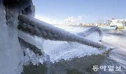 이번 겨울 들어 서울에 첫 한파주의보가 내려진 9일 한강 여의도지구 선착장 부근이 꽁꽁 얼어붙어 있다. 기상청은 10일에도 서울의 최저기온이 영하 10도를 기록하는 등 강추위가 이어지다가 주말부터 누그러질 것으로 내다봤다. 원대연 기자 yeon72@donga.com}