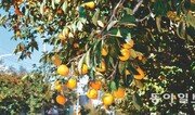 충북 영동군 영동읍 도로변의 감나무 가로수가 주황빛으로 물들고 있다. 영동군에는 군 전체 도로 118㎞에 1만3900여 그루의 감나무가 심어져 있다. 이 감나무 가로수는 2000년 ‘전국 아름다운 거리 숲 경연대회’에서 대상을 받았다. 영동군 제공}