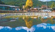 반기문 유엔 사무총장의 생가인 충북 음성군 원남면 상당리 ‘반기문기념관’ 연못에 은행나무와 주변 산 등이 그대로 투영돼 한 폭의 산수화를 보는 듯하다. 음성군이 2010년 기념관을 지으면서 함께 조성한 이 연못 주변에는 지구 평화를 상징하는 지구본과 산책로가 있다. 반기문기념관에는 평일 150여 명, 주말 200∼300여 명이 찾는 등 지금까지 9만여 명이 다녀갔다. 음성군 제공}