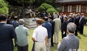 17일 제헌절을 맞아 서울 종로구 계동 인촌 김성수 선생의 고택을 찾은 인촌사랑방 및 동우회 회원 40여 명이 1948년 제헌헌법 제정을 주도한 인촌 선생의 공로를 기리는 행사를 열고 있다. 최혁중 기자 sajinman@donga.com}