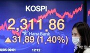 5일 서울 중구 하나은행 딜링룸에서 한 직원이 주가가 적힌 전광판 앞을 지나가고 있다. 이날 코스피는 전날보다 31.89포인트(1.40%) 오른 2,311.86으로 마감하며 1년 10개월 만에 2,300 선을 돌파했다. 최혁중 기자 sajinman@donga.com}