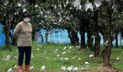 27일 오전 전남 영광군 군서면 '아름답게 그린배' 과수원에서 한양임 대표(64)가 제8호 태풍 바비의 강풍으로 낙과된 배를 한데 모으고 있다. 영광=최혁중 기자 sajinman@donga.com}