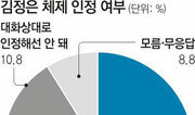 김정일 북한 국방위원장 사망을 계기로 우리 국민은 향후 남북 관계의 안정적 관리를 선호하는 것으로 나타났다. 김정은 체제는 오래 지속될 것이란 전망과 함께 천안함 폭침 및 연평도 포격 도발 이후 우리 정부가 고수해온 북한의 ‘선(先)사과’에 매달리지 말고 남북관계 개선에 나서야 한다는 응답이 많았다. 이는 작년 1월 발표된 본보 여론조사 때 ‘원칙적인 대북정책을 유지하라’(47.3%)와 ‘대화와 타협을 통한 온건한 정책으로 바뀌어야 한다’(48.4%)는 응답이 엇비슷했던 것과는 크게 달라진 결과다. 김정일 사망 및 후계자 승계 과정에서의 북한 내 권력다툼 가능성이 먼 미래의 일이 아니라 ‘실제 상황’으로 현실화하면서 불안 요인을 정부가 관리해 주기를 바라는 것으로 풀이된다.○ “김정은 체제 오래갈 것” 응답자의 56.4%는 “북한은 무너질 사회가 아니며 중국도 지원하기 때문에 오랜 기간 지속될 것”이라고 답했다. “당분간 유지되지만 2, 3년 내로 무너진다”는 답변(28.9%)이나 “내부 권력투쟁과 민심 이반으로 1년 안에 무너진다”는 응답(4.3%)보다 훨씬 많았다. 김정은 체제의 안정성을 높이 내다본 응답은 30∼50대 남성에서 뚜렷하게 나타났다. 이런 응답성향은 한나라당 지지층 혹은 자신을 보수적으로 평가한 응답자에서도 비슷하게 나타났다. 한나라당 지지자의 54.9%와 보수성향 응답자의 55.7%가 ‘오랜 지속’을 예상했다. 상대적으로 20대 남성은 9.8%가 ‘1년 내 붕괴’를 전망했다. 20대 남성은 지난해 발생한 북한의 천안함·연평도 도발을 계기로 북한 체제에 대해 젊은층 가운데 비판적인 의식이 가장 높은 그룹이다. ○ “김정은의 태도 봐 가며 대화해야” 이명박 정부가 3대 세습을 통해 집권하는 김정은 체제를 인정해야 하는지에 대한 질문에서는 ‘북한의 태도’가 가장 중요하다는 의견이었다. 응답자의 47.9%는 “한반도 비핵화에 대한 태도를 보면서 판단해야 한다”고 답했다. “김정은을 대화상대로 인정해야 한다”는 답변(32.5%)도 적지 않았다. “대화상대로 인정하면 안 된다”는 응답은 10.8%에 그쳤다. 한나라당 지지층에서는 ‘김정은 인정’ 응답이 평균(32.5%)보다 낮은 22.9%였다. 반면에 민주통합당 지지층에서는 “인정하라”는 답변(44.5%)이 평균보다 높았다. “태도를 봐가며 판단하라”는 답변(43.3%)보다 오차 범위 내에서 조금 더 높은 점이 눈에 띈다.○ “북한 사과에 얽매일 필요 없다” 응답자의 53.3%는 “북한의 사과에 얽매이지 말고 남북관계를 전향적으로 풀 때가 됐다”고 답했다. 반면 37.3%는 “북한의 사과가 없으면 북한과의 대화에 적극 나서면 안 된다”고 답했다. 보수층 및 한나라당 지지자, 박근혜 비대위원장 지지층은 양쪽 의견이 오차 범위 내에서 엇비슷하게 나타났다. 3040세대에서 남북관계의 전향적 관리 요구가 컸다. 386세대가 주축이 된 40대 남성은 ‘사과에 얽매이지 말라’는 응답이 65.8%에 이르렀다. ‘사과 필요’(41.0%)의 응답이 ‘얽매이지 말라’(39.4%)보다 더 많은 연령층은 60대 이상이 유일했다. 다만 20대 남성층에서는 ‘북한 사과가 필요하다’는 응답이 44.3%로 전체 성별 연령별 그룹 가운데 사과 요구가 가장 높은 것으로 나타났다.김승련 기자 srkim@donga.com}
