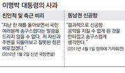 이명박 대통령은 2일 신년 연설에서 집권 4년차인 지난해 잇따라 터진 친인척과 측근 비리에 대해 “송구스럽다”며 사과했다. 사과는 취임 후 네 번째이며 친인척과 측근 비리에 대해 사과한 것은 처음이다. 청와대는 지난해 중반까지만 해도 “우리는 대선 과정에서 대기업에 손을 내민 적이 없다. 권력형 비리가 없는 정부가 될 것”이라며 자신감을 보였다. 그런 점에서 “가장 뼈아픈 사과”라고 청와대 관계자는 말했다. 이 대통령은 이날 친인척이나 측근과 같은 표현을 쓰지는 않았다. 그 대신 “저 자신과 주변을 되돌아보고 잘못된 점은 바로잡고, 보다 엄격하게 관리하겠다”고 말했다. 이 대통령은 1, 2월에 따로 기자회견 등의 형식을 통해 친인척 비리 등에 대해 정식으로 사과하는 방안을 검토 중이라고 한다. 당초 지난해 크리스마스 전후로 잡았던 기자회견에서 자신의 소회를 밝힐 예정이었지만 12월 19일 김정일 사망 발표에 따라 ‘연내 사과’의 기회가 없어졌다는 것. 청와대 고위 관계자는 기자들과 만나 “신년 연설은 국정을 전반적으로 설명하는 자리여서 (사과 대상에 대해) 하나하나 구체적으로 설명하지 못했다”고 말했다. 이에 앞서 이 대통령은 취임 후 몇 차례 고개를 숙인 적이 있다. 2008년 5, 6월 미국산 쇠고기 협상이 촛불시위를 부르자 연달아 사과의 뜻을 밝혔다. 2009년 11월에는 TV에 출연해 대통령 선거 때 세종시를 원안대로 건설하겠다는 약속을 뒤집게 된 점에 대해 “원안대로 하겠다고 했던 발언이 부끄럽다”고 말했다. 또 지난해에는 자신의 대선공약이었던 영남권 신공항 백지화 결정 이후 “결과적으로 신공항 공약을 지킬 수 없게 된 것을 안타깝고 송구스럽게 생각한다”고 말했다.김승련 기자 srkim@donga.com}