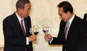 이명박 대통령은 10일 청와대에서 반기문 유엔 사무총장과 면담한 데 이어 만찬을 함께했다. 이 대통령은 “나는 반 총장의 덕을 보고 있다”며 재선을 축하했다. 이어 “유엔 사무총장이 앞장서 역할을 하고 대한민국이 역할을 하면 국제사회에서 대한민국의 인식을 올리는 데 큰 도움이 될 것”이라고 강조했다. 반 총장은 “국내외 어려운 여건에도 한국 국운이 욱일승천하고 있다”고 화답했다. 특히 평창 겨울올림픽 유치에 대해 “그 중심에는 이 대통령의 솔선수범 리더십이 있었다. 역사적 현장에서 1분 1초를 아껴가며 1표를 얻기 위한 유치 활동을 벌인 열정, 비전이 가져온 값진 승리였다”고 말했다. 이에 앞서 반 총장은 이날 오전 서울 중구 소공동 롯데호텔에서 유엔 글로벌콤팩트(UNGC) 한국협회(협회장 이승한 홈플러스그룹 회장) 주최로 열린 조찬 간담회에서 “한국 기업들이 책임을 갖고 국제사회에서 지속 가능한 성장을 이끌어 가야 한다”고 강조했다. UNGC는 지속 가능한 개발과 기업의 사회적 책임을 촉구하기 위해 유엔에서 발족한 자율적 국제협약기구로 세계 130개국 7700여 개 기업 및 단체가 가입돼 있다. 반 총장은 UNGC 보드 멤버인 최태원 SK그룹 회장의 노력을 언급하면서 올해 11월 한국에서 열리는 ‘글로벌 사회적 기업 콘퍼런스’에 대한 참여도 부탁했다. 간담회 전 반 총장은 어린이들이 환경 사랑을 주제로 그린 그림과 조각품을 감상하고 어린이들을 격려했다. 롯데호텔에 전시된 그림과 조각품은 홈플러스 사회공헌재단인 e파란재단이 주최한 ‘2011 e파란 어린이 환경그림대회’에서 입상한 작품들이다. 반 총장은 이어 서울 여의도 국회를 방문해 “기후변화와 에너지, 물, 식량 부족 등 국제적인 위기를 해결하기 위해선 의회의 리더십이 절대적으로 필요하다”고 강조했다. 반 총장은 서울 중구 장충동 신라호텔에서 교육과학기술부와 외교통상부, 한국대학교육협의회가 마련한 ‘2011 UNAI(UN Academic Impact) 포럼 인 서울’에도 참석했다.정용관 기자 yongari@donga.com 손효림 기자 aryssong@donga.com }