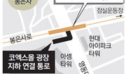 서울 강남구 삼성동 코엑스몰과 지하철 9호선 코엑스사거리역(929정거장)이 보행통로로 연결된다. 이번 연결통로는 지하철에서 코엑스 성큰광장으로 출입할 수 있도록 연결된다. 연결통로 공사에 약 55억 원이 투입되며 통로 폭은 15∼19m, 길이는 약 49.3m. 에스컬레이터 2대와 엘리베이터 1대도 설치된다. 시 관계자는 “2호선 삼성역을 통해 코엑스몰을 이용하는 승객 수는 약 8만 명 정도”라며 “지하철 9호선과 코엑스몰이 연결되면 유동인구와 상권이 더욱 활기를 띨 것”이라고 말했다.이새샘 기자 iamsam@donga.com}