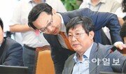 새정치민주연합 이종걸 원내대표는 14일 오전 국회 원내대표실에서 추가경정예산 관련 기자간담회를 열었다. 그러나 이 자리에 당의 예산·정책을 총괄하는 강기정 정책위의장은 보이지 않았다. 야당의 추경안을 논의하는 자리에 강 의장이 빠진 건 처음이다. 강 의장은 이날 동아일보와의 통화에서 “(추경 기자간담회 개최 사실을) 몰랐다”며 “추경(관련)이면 날 불렀어야지 왜 안 불렀는지…”라고 당혹스러워했다. 이 원내대표 측이 기자간담회 개최 사실을 강 의장에게 전달조차 하지 않은 것이다. 이에 대해 박수현 원내대변인은 “원내대표 기자회견이어서 메르스(MERS·중동호흡기증후군) 특위와 예결특위만을 대상으로 했다”고 해명했다. 당내에서는 정책위의장 자리를 놓고 친노(친노무현) 진영과 힘겨루기를 벌이고 있는 이 원내대표 측이 본격적인 ‘위력 시위’에 나섰다는 분석이 나온다. 비노(비노무현) 진영의 이 원내대표는 문재인 대표가 임명한 강 의장의 교체를 요구하고 있다. 이 원내대표와 강 의장은 9일에도 메르스 관련 의료기관 피해 지원액을 놓고 고성이 오가는 설전을 벌였다. 강 의장은 2000억 원을, 이 원내대표는 1조 원 수준을 주장한 끝에 지원액은 3000억 원 수준으로 조정됐다. 하지만 이 원내대표는 이날 간담회에서 “병원 지원 예산을 5000억~6000억 원 규모로 늘리기로 했다”고 밝혔다. “삼성의료원을 제외하면 2000억 원 수준이면 충분하다”는 강 의장의 의견을 배제하고 증액을 결정한 것이다. 한 당직자는 “두 사람이 돌아올 수 없는 강을 건넌 것 같다”고 말했다. 한편 새정치연합 김상곤 혁신위원장은 이날 기자간담회를 열고 새누리당 김무성 대표가 제안한 여야 오픈프라이머리(완전국민참여경선제) 동시 실시에 부정적인 반응을 보였다. 김 위원장은 “(오픈프라이머리가) 국민에게 공천권을 돌려준다는 선언적 의미는 있지만 기득권 유지가 용이하고 신인의 진입이 어렵다는 현실적 한계가 있다”고 지적했다. 혁신위원인 조국 서울대 교수도 “김 대표의 오픈프라이머리 제안은 공천을 줄 테니 (나의) 대권으로 가자는 선언”이라고 비판했다. 김 위원장은 비노계의 신당 움직임도 강력 비판했다. 그는 “새정치연합이 ‘자기 역할을 못 한다’는 실망의 목소리도 있지만 (신당 주장의) 상당수는 본인의 기득권 유지를 위해 하는 얘기”라고 주장했다. 조 교수는 “돈 대주고 힘 대주는데 (당의) 의사결정에서는 소외 된다고 여긴다면 내가 호남사람이라도 (새정치연합을) 안 찍는다”면서도 “(호남) 현역의원의 문제임에도 다 문재인 대표 탓을 한다”고 말했다.한상준 기자 alwaysj@donga.com 황형준 기자 constant25@donga.com}
