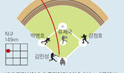 염경엽 넥센 감독은 플레이오프 1차전에 모든 것을 걸었다. 27일 서울 목동구장에서 열린 LG와의 플레이오프 1차전을 앞두고 염 감독은 “1차전이 잘 풀리면 남은 포스트시즌에서 우리의 야구를 할 수 있다. 하지만 1차전에서 꼬이면 힘들게 갈 것 같다”고 했다. 경기 초반은 생각 같지 않았다. 2회말 선취점을 냈지만 계속된 1사 만루 찬스에서 추가점을 내지 못한 게 아쉬웠다. 찬스 뒤엔 위기였다. 3회초에서 1-2로 역전을 허용했고, 4회에는 스나이더에게 솔로홈런을 허용해 1-3으로 스코어가 벌어졌다. 5회초에도 1사 1, 3루의 위기를 맞았다. 선발 투수 소사는 최고 시속 158km의 강속구를 던졌지만 제구가 제대로 되지 않았다. 더이상 점수를 내주면 따라잡기가 힘들어지는 상황. 염 감독은 여기서 조상우 카드를 꺼내 들었다. 한현희-손승락과 함께 넥센의 필승조인 조상우는 팀 내에서 가장 좋은 구위를 자랑한다. 질 때가 아니라 이기고 있을 때 나가는 투수다. 하지만 1차전에 ‘다걸기(올인)’한 염 감독은 주저 없이 조상우를 마운드에 올렸다. 결과는 대성공. 조상우는 LG에서 가장 타격감이 좋은 이병규(등번호 7번)를 유격수 앞 병살타로 유도하며 위기를 벗어났다. 넥센의 구세주는 또 하나 있었다. 올 시즌 후반기부터 도입된 ‘심판 합의판정’ 제도다. 1-3으로 뒤진 6회말 선두 타자 강정호는 LG 선발 우규민의 오른발을 맞히는 강습타구를 쳤다. 굴절된 타구를 포수 최경철이 1루에 뿌렸고, 박기택 1루심은 아웃을 선언했다. 넥센 벤치는 즉시 합의판정을 요청했다. 비디오 판독 결과 강정호의 발이 빨랐던 게 확인됐고 판정은 세이프로 번복됐다. 포스트시즌 사상 비디오 판독으로 판정이 바뀐 첫 사례다. 만약 합의판정 제도가 없었다면 넥센은 공격의 활로를 찾기 힘들었을 것이다. 넥센은 바뀐 투수 정찬헌을 상대로 김민성이 몸에 맞는 볼로 출루하고 이성열이 적시타를 때려내며 한 점을 추격했다. 이성열의 안타 때 홈을 밟은 2루 주자 강정호에 대해 LG 벤치도 합의판정을 요청했으나 이번에는 판정이 바뀌지 않았다. 계속된 1사 2, 3루에서 대타로 타석에 들어선 윤석민은 볼카운트 2볼 노 스트라이크에서 정찬헌의 높은 공을 밀어 쳐 경기를 뒤집는 우월 3점 홈런을 터뜨렸다. 승부의 물줄기를 뒤바꾼 윤석민은 1차전 최우수선수(MVP)로 선정됐다. 넥센은 8회말 공격에서 한 점을 더 추가해 6-3으로 승리하며 그토록 원했던 첫 승을 따냈다. 조상우는 7회까지 2와 3분의 2이닝을 1안타 무실점으로 막으며 승리 투수가 됐다. 넥센은 8회부터 손승락을, 9회 2사 후엔 한현희를 차례로 등판시키며 승리를 지켰다. 이헌재 uni@donga.com·주애진 기자 }