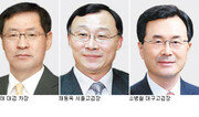 차기 검찰총장 후보가 김진태 대검찰청 차장(61)과 채동욱 서울고검장(54·이상 사법연수원 14기), 소병철 대구고검장(55·15기)으로 압축됐다. 법무부 장관은 7일 검찰총장후보추천위원회가 추천한 이들 3명 가운데 한 명을 후보로 대통령에게 임명 제청한다. 그리고 국회 인사청문회를 통과하면 총장직에 오른다. 다만 임명 제청 시기는 별도로 규정된 게 없어 법무부가 박근혜 대통령 당선인 측과 협의한 뒤 결정할 것으로 보인다. 추천위를 통한 검찰총장 임명 절차는 헌정사상 처음으로 진행되는 것이다.○ ‘추천위의 반란’ 추천위는 9명의 위원 가운데 민간위원 1명을 제외한 8명이 참석해 이날 오후 2시부터 2시간 동안 9명의 후보자를 놓고 토론을 벌였다. 위원들은 각자 자신이 들은 평판과 법무부 검증 결과를 바탕으로 후보자 한 명씩 총장직에 적합한지 논의했다. 이후 위원 한 명당 후보자 3명씩을 고르도록 해 5표 이상이 나온 후보자 2명을 먼저 추려냈고, 다시 한 차례 위원당 2명씩 뽑도록 해 5표 이상 얻은 후보자 1명을 골랐다. 한 위원은 “우리가 추천한 사람이 청문회 과정에서 낙마하면 우리도 책임이 있으므로 적어도 ‘거수기’는 되지 말자는 공감대가 있었다”며 “후보자에 대한 자유토론이 끝난 뒤 한 위원이 공정한 투표방식을 제안해 모두가 이를 받아들였다”고 말했다. 추천위의 결정은 당초 정치권과 검찰 내부에서 차기 검찰총장 후보자로 유력하게 거론되던 인사들과는 다소 거리가 있다는 평가가 나온다. 현직 헌법재판소 재판관이면서 검찰총장 후보자 검증에 동의해 물의를 빚은 안창호 재판관(56·14기)이나 정관계에 폭넓은 친화력을 자랑하는 김학의 대전고검장(57·14기)이 정치권에서 유력한 총장 후보로 하마평에 올랐지만 결국 후보자로 추천되지 못했다. 수도권 지검의 한 부장검사는 “추천위가 제 기능을 다하지 못할 것이라고 언론이 계속해서 지적하자 위원들이 반란을 일으킨 것”이라고 평가했다.○ 후보자 출신지역 모두 달라 이날 추천된 세 명의 후보자는 출신지역이 모두 다르다. 김 차장은 경남 사천 출신으로 경남 진주고를 졸업했고, 채 고검장은 서울에서 태어나 서울 세종고를 나왔다. 소 고검장은 전남 순천 출신으로 광주제일고를 졸업했다. 박 당선인과 같은 대구·경북(TK) 출신은 없다. 통상 검찰총장은 내부적으로 법무부 장관 및 대통령민정수석비서관과, 외부적으로는 국가정보원장, 국세청장, 경찰청장 등 4대 권력기관의 수장들과 지역을 안배하게 된다. 이 때문에 검찰총장 임명제청은 후임 법무부 장관 등이 정해질 때까지 다소 시간이 걸릴 것이라는 예측도 나온다. 김 차장은 최근 ‘검란(檢亂)’ 사태로 한상대 전 검찰총장이 물러난 뒤 검찰총장 직무대행을 맡아 단기간에 조직을 안정시킨 점을 높이 평가받고 있다. 원칙과 기본을 강조하고 일처리가 꼼꼼하다. 채 고검장은 대표적인 ‘특수통’ 검사로 굿모닝시티 분양비리, 현대차 비자금 수사를 앞장서 지휘했다. 상황판단이 뛰어나고 후배들의 신망도 높다. 대검 차장으로 재직하다 최근 ‘검란’ 사태로 인해 서울고검장으로 옮겼다. 소 고검장은 법무부 기획조정실장, 검찰1과장, 대검 범죄정보기획관 등 주요 보직을 두루 거쳤으며 성실하고 후배들을 자상하게 배려한다는 평가가 나온다. 최창봉·최예나 기자 ceric@donga.com}