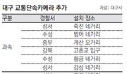 대구시와 대구지방경찰청은 연말까지 교통사고가 많이 발생하는 13곳에 과속 및 신호위반 단속 카메라를 설치한다. 지난해 동구 송라시장 앞 등 12곳에 설치한 카메라가 교통사고 예방에 효과가 있다는 판단에서다. 달서구 죽전 네거리는 과속 등으로 2014년에 교통사고가 54건 발생했다. 수성구 범어 네거리와 중구 계산 오거리 등도 과속과 신호위반 차량이 많은 지역으로 꼽힌다. 출퇴근 시간에 꼬리 물기 차량 때문에 교통 정체도 심하다. 수성구 황금 네거리와 달서구 감삼 네거리 등에 과속 단속 카메라를, 수성구 한가람아파트 앞과 중구 남산4동 우체국 앞 등에 신호위반 단속 카메라를 설치한다. 대구시는 이달부터 연말까지 5억9800만 원을 들여 교통단속용 폐쇄회로(CC)TV를 설치할 계획이다. 장영훈 기자 jang@donga.com}