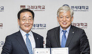 앞으로 고려대와 연세대의 학생 및 교직원은 상대 학교 도서관을 자유롭게 이용할 수 있다. 도서관 시설은 물론 각종 서비스와 학술정보까지 함께 이용할 수 있다. 사실상 도서관이 통합되는 것이다. 24일 오후 2시 서울 서대문구 연세대 연세·삼성 학술정보관 장기원국제회의실에서 ‘학술자원 공동 활용 및 정보통신기술(ICT) 분야 상호협력 협정’ 체결식이 열렸다. 염재호 고려대 총장에 대한 명예교육학박사 학위 수여식 직전 열린 행사에서 두 대학은 앞으로 학술자원 및 인프라를 공유하고 교육·연구·ICT 분야의 상호협력 네트워크를 강화하기로 했다. 이로써 고려대와 연세대 학생 및 교직원은 두 학교 도서관이 보유한 학술자원과 서비스, 시설 등을 하나의 도서관처럼 자유롭게 이용할 수 있다. 개인 아이디(ID) 카드만 있으면 원하는 소장 자료를 즉시 대출하거나 각종 시설을 제한 없이 이용할 수 있다. 여전히 국내 주요 대학 간 소장 자료를 공유하려면 며칠씩 걸리는 경우가 많다. ICT 인프라 공유도 활성화한다. 고려대 CCL(CJ Creator Library·놀며 떠드는 도서관)은 콘텐츠·미디어 제작 위주의 모델이다. 연세대 Y밸리 내 메이커스페이스는 최첨단 하드웨어를 갖추고 있다. 두 학교는 협업을 통해 새로운 창의인재 양성 및 육성이 가능해질 것으로 기대하고 있다. 명문 사학들이 상호 발전을 위한 협력 모델을 구축한 것은 국내뿐 아니라 해외에서도 유례가 드물다. 이경호 고려대 정보전산처장은 “양교의 정보통신 역량을 총동원해 대학을 이끌어 나가는 주축으로서 역할을 다하겠다”고 했다. 이봉규 연세대 학술정보원장은 “학술정보자원 간 장벽을 허물어 활용을 극대화해 양교의 연구력을 높이는 것으로 국내를 넘어 세계 속 라이벌로 거듭날 것”이라고 말했다. 이날 협약을 맺은 연세대와 고려대는 지난해 ‘양교 공동 강의’를 개설하는 등 상호 협력을 이어오고 있다. 신규진 기자 newjin@donga.com}