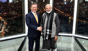 한국을 국빈 방문 중인 나렌드라 모디 인도 총리는 21일 “혼자 가면 빨리 가지만, 함께 가면 멀리 간다”며 한국 기업과의 경제협력을 강조했다. 모디 총리는 이날 대한상공회의소가 주최한 한-인도 비즈니스 심포지엄에서 “한국과 인도 간 양자교역 규모를 2030년까지 500억 달러로 키워 가겠다”며 이같이 말했다. 모디 총리는 2007년 방한 경험을 언급하며 “당시에도, 지금도 한국은 경제성장의 롤모델로서 저에게 자리 잡고 있다”며 “저희는 열망을 갖고 한국과 협력하고 싶다. 인도 정부가 아무리 노력해도 (한국) 재계에서 같은 꿈을 꿔야 한다”고 했다. 이날 간담회에는 성윤모 산업통상자원부 장관과 한-인도 경협위원장인 공영운 현대자동차 사장, 권평호 KOTRA 사장 등 400여 명이 참석했다. 모디 총리는 이어 문재인 대통령 내외와 서울 송파구 롯데월드타워 118층 서울스카이전망대를 방문한 뒤 친교 만찬을 가졌다. 문 대통령이 한국을 방문한 해외 정상과 청와대 밖에서 만찬을 한 것은 처음. 청와대 관계자는 “롯데가 인도 진출 계획을 갖고 있는 상황”이라며 “한국의 발전상을 알리면서 국내 기업을 돕자는 취지도 반영된 것”이라고 말했다. 문 대통령은 22일 모디 총리와 정상회담에 이어 오찬을 가질 예정이다. 이 자리엔 이재용 삼성전자 부회장, 정의선 현대자동차 수석부회장 등 기업인들이 참석할 것으로 알려졌다. 앞서 문 대통령은 모디 총리와 함께 연세대에서 열린 ‘마하트마 간디 흉상 제막식’에 참석해 “최근 한반도 평화에 큰 진전이 이뤄지고 있다”며 “‘평화로 가는 길은 없다. 평화가 길이다’라는 간디의 가르침이 더 깊이 와닿는다”고 말했다. 행사에는 반기문 전 유엔 사무총장과 허동수 GS칼텍스 회장, 김용학 연세대 총장이 참석했다.문병기 기자 weappon@donga.com}