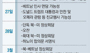 도널드 트럼프 미국 대통령과 김정은 북한 국무위원장이 26일 베트남 하노이에 도착하기로 하면서 하노이 정상회담이 초읽기에 들어갔다. 세부 회담 일정도 하나씩 윤곽을 드러내고 있다. ‘1호 열차’로 불리는 특별 열차를 통해 중국 대륙을 최단거리로 관통하는 김 위원장은 당초 예상보다 몇 시간 빠른 26일 오전 중국과 베트남 국경을 넘어설 것으로 보인다. 김 위원장은 베트남에 입경한 뒤 국도 1호선을 타고 승용차로 하노이까지 이동할 가능성이 크다. 일각에선 이 과정에서 베트남 박닌성에 있는 삼성전자 스마트폰 공장을 시찰할 수 있다는 전망이 나온다. 하노이에서 동쪽으로 약 43km 떨어진 박닌성 옌퐁에는 삼성전자 스마트폰 1공장이 있다. 이와 관련해 베트남 현지 외교 소식통은 “북한이 삼성전자 경제시찰 일정에 대해선 아직 공식적으로 통보하지 않은 것으로 알고 있다”며 “베트남 정부가 북-미 정상회담에 시선이 집중되길 원하는 것으로 알려져 가능성을 열어놓고 계속 예의주시하고 있다”고 말했다. 김 위원장은 하노이 숙소에 도착한 뒤 26일 오후부터 공식 일정에 들어갈 것으로 보인다. 응우옌푸쫑 베트남 국가주석과의 면담 등은 곧바로 이뤄지기 어려울 것이라는 관측이 나온다. 응우옌푸쫑 주석이 해외 순방을 마치고 26일 베트남으로 돌아올 예정이기 때문이다. 하이라이트인 북-미 정상의 재회는 27일 오후가 될 가능성이 크다. 북한 조선중앙통신은 24일 김 위원장이 하노이를 향해 특별 열차를 타고 출발했다는 소식을 전하며 북-미 정상회담 일정이 27, 28일 이틀이라고 보도했다. 이에 따라 트럼프 대통령과 김 위원장은 하노이 도착 다음 날인 27일 오후 만찬 등 친교 일정을 가질 가능성이 높은 것으로 보인다. 지난해 6월 싱가포르 정상회담 이후 8개월여 만에 만나는 북-미 정상이 오페라 관람 등 ‘깜짝 이벤트’를 가질 것이라는 관측도 나온다. 다만 정상회담은 28일 하루에 집중돼 사실상 당일치기 회담이 될 것으로 보인다. 북-미 협상 상황에 정통한 외교 소식통은 “회담은 트럼프 대통령과 김 위원장이 독대하는 단독 정상회담에 이어 오찬을 갖고 이어 확대 정상회담과 합의문 서명식 등의 순서로 진행될 것으로 보인다”고 말했다. 이어 트럼프 대통령은 싱가포르 정상회담 때처럼 기자회견을 한 뒤 워싱턴으로 출국할 것으로 예상된다. 김 위원장은 길게는 다음 달 2일까지 하노이에 머물며 별도의 베트남 ‘공식 친선방문’ 일정을 가질 것으로 알려졌다. 1964년 김일성 주석의 방문 이후 북한 지도자로서 55년 만의 베트남 방문인 만큼 베트남 정부는 사실상의 국빈방문 수준의 영접을 준비하고 있다. 김 위원장은 1일 오전 바딘 광장의 호찌민 묘소 참배를 시작으로 북-베트남 정상회담을 가진 뒤 이날 오후 항구도시 하이퐁에 있는 베트남 자동차 제조업체 공장 시찰과 대표적 관광지인 할롱베이를 시찰할 가능성이 크다. 이 기간에 베트남에 있는 삼성전자 공장, LG 공장을 둘러볼 가능성도 제기되고 있다. 김 위원장은 지도부 만찬 등 당 대 당 친선 일정을 소화한 뒤 2일 출국할 것으로 보인다.하노이=문병기 weappon@donga.com·이지훈 기자}