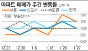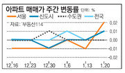 1월 마지막 주 서울 아파트 시장은 냉기가 쉽게 가시지 않고 있다. 30일 부동산114에 따르면 지난주 서울 아파트 값은 전주 대비 0.01% 오르는 데 그쳤다. 아파트 값이 9주 만에 상승세로 돌아선 전주(0.02%)보다 오름폭이 둔화됐다. 금리 인상의 가능성과 정국 불안 등으로 집을 팔려는 사람과 사려는 사람 모두 관망세를 유지하고 있다. 지역별로는 동대문(0.08%), 송파(0.07%), 영등포(0.07%), 관악구(0.05%) 순으로 아파트 값이 많이 올랐다. 반면 성동(―0.07%), 성북(―0.01%), 강남(―0.01%), 서대문구(―0.01%)는 수요가 뜸해지며 가격이 떨어졌다. 한편 지난주 서울의 전세금은 제자리걸음(0.00%)을 했다. 강서(0.10%), 영등포(0.09%), 강북(0.06%), 서초구(0.06%)는 중소형 위주로 올랐다. 강동(―0.34%), 성동(―0.08%), 양천(―0.05%), 성북(―0.02%), 동작(―0.01%), 도봉구(―0.01%)는 새 아파트 공급이 늘면서 떨어졌다. 강성휘 기자 yolo@donga.com}