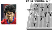 ■ 조광래호, 오늘밤 C조 최약체 인도와 3차전… 베스트11 총출동 18일 오후 10시 15분 알가라파 경기장에서 열리는 인도와의 아시안컵 조별리그 3차전에서 한국 대표팀의 선발 베스트 11은 어떻게 달라질까. 국제축구연맹(FIFA) 랭킹 144위인 인도는 이번 대회 16개 출전국 가운데 가장 약체로 평가된다. 호주에 0-4로, 바레인에 2-5로 졌다. 하지만 조광래 감독은 인도전에서도 주전들을 풀가동할 예정이다. 16일 알와크라 경기장의 보조경기장에서 열린 훈련에서 앞선 두 경기 선발 멤버들이 변함없이 주전 조끼를 입었다.○ 구차절 나홀로 3골… 공격수들 침묵 인도전의 키워드는 주전 공격수들의 득점 감각을 끌어올리는 것이다. 같은 시간 바레인과 3차전을 치르는 호주와 동률이 예상되는 상황에서 한국은 조 1위로 8강에 가려면 대량 득점이 필요하다. 8강 이후를 대비하기 위해서도 득점력을 높일 필요가 있다. 앞선 두 경기에서 한국의 득점(3골)은 구자철(제주)에게 집중됐다. 한 선수만 골을 넣는 상황은 경기력에 도움이 안 되며 상대에게 위협적이지도 않다. 한국은 두 경기에서 41번의 슛 중 12번만 골대 안쪽으로 향했고 3골을 넣었다. 8강전 상대가 될 수 있는 이란은 19번의 슛 중 절반인 8번이 골대 안쪽으로 향해 한국과 똑같이 3골을 넣었다. 조광래 감독은 인도전을 대비한 훈련에서 슈팅 훈련에 큰 비중을 뒀고 슛이 골대를 벗어날 때마다 집중하라고 질책하고 독려했다. 이청용(볼턴)은 “감독님이 페널티 지역 안에서 공을 잡으면 100% 골로 연결해야 한다고 강조했다”고 말했다.○ ‘네 공격 본능을 보여줘’ 구자철의 경우 원래 수비형 미드필더 역할을 주로 하다 이번 대회에선 처진 스트라이커 자리에 서며 공격형으로 변신했다. 반대로 공격 성향을 억누르는 선수도 있다. 기성용(셀틱)이 대표적. 기성용은 FC 서울에 있을 때부터 공격 성향이 두드러진 미드필더였지만 이번 대회에선 좀처럼 전진을 하지 않는다. 가끔 중거리 슛을 때리는 것이 고작이다. 기성용은 “셀틱에서 수비형 미드필더 역할을 맡아 상관없다”고 했지만 때론 앞으로 막 뛰어나가려 하다가도 갑자기 멈춰서며 공격 성향을 억누르는 모습이 보였다. 기성용과 같은 선상에 서는 이용래(수원)는 “둘 중 한 명이 앞으로 나서면 다른 한 명은 뒤에 남아 수비하는 것이 우리 역할인데 호주전 때는 체격이 좋은 기성용이 더 수비에 치중했다”며 “인도전에선 우리 모두에게 공격 기회가 더 많을 것이다. 나도 슛까지 해볼 생각”이라고 말했다. 도하=김성규 기자 kimsk@donga.com▼B조 경기결과일본 : 사우디아라비아 5-0요르단 : 시리아 2-1}