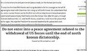 남북 정상회담 개최를 맞아 미국 백악관 청원 사이트가 시끄럽다. 한국의 보수와 진보 세력이 정상회담 의제를 놓고 팽팽한 세(勢) 대결을 펼치고 있는 것이다. 백악관 청원사이트 ‘위 더 피플(We the People)’에 ‘한반도 평화협정 촉구’ 청원이 올라온 건 지난달 15일이다. “트럼프 대통령이 김정은 북한 국무위원장과의 만남에 동의했고 평화를 위한 용기에 감사드린다” “한국전쟁을 종식하는 항구적인 평화협정이 이뤄진다면 역사에 오래 기억될 것” 등의 내용이다. 미국 내 한인이 쓴 것으로 보인다. 개설 26일째인 9일 10만 명이 청원에 참여했고 26일 현재 11만 명에 육박했다. 30일 이내에 10만 명이 참여하면 미국 행정부는 60일 내에 공식적인 검토 후 결과를 발표해야 한다. 청원은 좋은벗들 미국지부와 평화재단 등의 주도로 소셜네트워크서비스(SNS)를 통해 확산됐다. 평화재단 관계자는 “10만 명이 넘는 국민이 참여했다는 것은 평화협정 체결을 지향하는 남북 정상회담을 찬성한다는 의미”라고 했다. 평화협정 찬성 청원이 10만 명을 넘긴 다음 날(10일) 이른바 ‘맞불 청원’이 등장했다. ‘북한의 독재정권이 끝날 때까지 평화협정은 없다’는 제목의 청원이다. “북한과의 평화 조약은 주한미군 철수로 이어질 것이고 한국은 베트남전과 같은 재앙의 역사를 겪을 것” “북한의 완전한 비핵화와 북한 주민의 인권 문제를 충분히 다뤄야 한다” 등의 내용이 담겨 있다. 청원에는 1만6000여 명이 참여했다. 보수단체 등도 SNS를 중심으로 청원 참여를 독려하고 있다. 고유환 동국대 교수(북한학과)는 26일 “(백악관 청원을 통해) 한반도 문제의 핵심 이해당사자인 미국의 동의를 얻으려는 움직임이다. 남북 정상회담이 한반도를 넘어 세계 평화와 직결된 만큼 국민들 역시 국제적 이슈로 받아들이고 있는 것”이라고 진단했다. 오프라인 집회도 이어지고 있다. 남북 정상회담 하루 전인 26일 오후 서울 광화문광장에서 자유대한호국단 등 보수단체 회원 수십 명이 ‘위장평화 정상회담 반대’ 집회를 열었다. 이들은 24일부터 매일 집회를 열고 있다. 회원들은 “평화를 이야기한다고 하지만 북한 주민들의 고통스러운 삶이 더 먼저”라고 입을 모았다. 남북 정상회담 당일도 양측의 집회가 이어진다. 27일 오전 10시 메인프레스센터가 있는 경기 고양시 킨텍스 전시장 앞에서 고양시민연대 등 20여 개 시민단체 회원 200여 명은 ‘남북 정상회담 성공 기원’ 환영 집회를 연다. 참가자들은 한반도기 200장을 끈으로 연결하는 퍼포먼스도 선보일 예정이다. 오후 1시 30분 파주시 임진각에선 태극기혁명국민운동본부 등 보수단체 회원 200여 명이 ‘4·27 김정은-문재인 판문점 회담 평화 가장 대사기극 규탄대회’를 개최한다. 이들은 집회 후 임진각에서 통일대교까지 행진을 벌일 계획이어서 경찰과의 충돌 가능성도 우려된다.신규진 newjin@donga.com·김은지 기자}