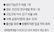 한국의 인재개발 경쟁력이 경제협력개발기구(OECD) 회원국 36개국 가운데 중하위권인 21위인 것으로 나타났다. 연구개발 투자나 고등교육 이수 인구 비율 등은 최상위권이었지만 출산율, 개인건강 인식도, 성별 임금 격차, 사회적 네트워크 지원 분야에선 각각 꼴찌를 면치 못했다. 한국인적자원연구센터 소장을 맡고 있는 오헌석 서울대 교육학과 교수는 ‘글로벌 인재개발 인덱스’를 통해 OECD 36개국의 인재개발 시스템을 분석한 결과를 5일 밝혔다. 인재개발 경쟁력을 보여주는 44개의 세부지표를 평가하는 방식이다. 1위는 미국이 차지했고, 이어 스위스 영국 스웨덴 노르웨이 순이었다. 최하위는 터키였다. 한국의 인재개발 경쟁력은 21위로, 이 인덱스를 통해 처음 분석했던 2011년(23위)보다 2계단 상승했지만 여전히 일본보다 낮았다. 일본은 2011년 22위에서 올해는 19위로 3계단 올라갔다. 세부 지표별로 살펴봤을 때 선진국들은 여러 지표에서 고른 순위를 기록한 반면에 한국은 지표별 편차가 크다는 점이 우려스럽다고 연구팀은 지적했다. 한국이 높은 순위를 기록한 지표들은 인재 공급, 투자 분야에 몰려 있다. 생산가능인구 비율과 정부·민간의 연구개발 투자는 OECD 회원국 중 최고였다. 고등교육 이수 인구 비율(4위), 국제학업성취도평가(PISA) 점수(5위)도 상위권에 이름을 올렸다. 반면 장기적인 경쟁력의 기반이 될 출산율은 OECD 중 가장 낮았다. 성별에 따른 임금 격차와 개인이 인식하고 있는 육체·정신적 건강 상태도 최하위로 집계됐다. 사회적 네트워크도 꼴찌였다. 사회적 네트워크는 15세 이상 개인에게 ‘곤경에 처했을 때 도움을 줄 수 있는 친구나 친척이 있느냐’고 물었을 때 긍정적으로 대답한 비율로 평가했다. 한국은 76%만이 ‘그렇다’고 대답했다. 미국(93%), 일본(90%) 등에 크게 못 미쳤다. 오 교수는 “인재개발을 촉진하는 제도와 환경 경쟁력이 여전히 최하위권”이라면서 “국가경쟁력을 향상시키려면 인재개발에 대한 투자를 늘려야 하며, 지속적인 시스템 개선 노력이 절실하다”고 말했다.홍석호 기자 will@donga.com}