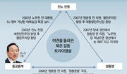 새정치민주연합 문재인 대표를 중심으로 한 친노(친노무현) 진영, 권노갑 상임고문이 좌장 격인 동교동계, 그리고 4·29 재·보궐선거 구도를 뒤흔든 정동영 전 의원을 포함한 야권 세력은 얽히고설킨 구원(舊怨)을 갖고 있다. 동교동계와 친노 진영의 갈등은 2003년 노무현 정부 출범 뒤 김대중 정부를 겨낭해 실시된 대북송금 특검을 계기로 감정의 골이 깊어졌다. 이후 친노 진영이 새천년민주당을 깨고 열린우리당을 만들면서 동교동계의 불만은 더 커졌다. 이 때문에 동교동계는 올해 2·8 전당대회에서는 박지원 의원을, 이어진 서울 관악을 후보 경선에서는 김희철 전 의원을 지원했지만 친노 진영에 연패했다. 권 고문은 정 전 의원과 불편한 관계다. 정 전 의원은 2000년 천정배 전 의원과 함께 정풍(整風)운동을 주도하며 권 고문의 2선 퇴진을 요구했다. 권 고문이 정 전 의원과 천 전 의원이 출마한 관악을과 광주에서 지원 유세에 나설 가능성이 점쳐지는 이유는 이런 ‘배신’을 경험한 권 고문이 두 사람의 당선을 지켜만 보고 있지는 않을 것이라는 관측 때문이다. 친노 진영도 정 전 의원에 대한 감정이 좋지 않다. 열린우리당 당 의장, 통일부 장관 등을 지내며 ‘노무현 정부의 황태자’로 불렸던 정 전 의원은 2007년 대선을 앞두고 노 전 대통령의 만류에도 불구하고 열린우리당을 뛰쳐나갔다. 한 친노 인사는 “노 전 대통령은 정 전 의원을 각별히 생각했지만 결국 정 전 의원은 마지막에 노 전 대통령을 배신했다”며 “배은망덕의 극치”라고 성토했다.한상준 기자 alwaysj@donga.com}