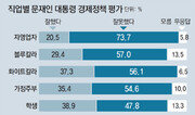 “‘나라가 달라지니 내 삶도 좋아지는구나’ 하고 느낄 수 있도록 정부의 모든 역량을 쏟아붓겠다.” 지난해 1월 2일 신년 인사회에서 문재인 대통령은 이같이 말했다. 소득주도성장 정책을 본격화해 국민 체감 성과를 높이겠다는 자신감을 내비친 것이다. 하지만 1년이 지난 현 시점에서 경제정책은 문재인 정부의 아킬레스건이자 지지율 하락의 진원지가 되고 있다. 동아일보 신년 여론조사에 따르면 가장 큰 경제 실책은 최저임금 인상과 일자리 정책의 실패로 꼽혔다.○ 저소득층일수록 “경제정책 잘못돼” 동아일보가 여론조사 전문기관인 리서치앤리서치에 의뢰해 지난해 12월 26∼29일 실시한 여론조사에 따르면 ‘2018년 한 해 동안 문 대통령이 경제정책을 잘했다고 생각하십니까’라는 질문에 60.4%는 ‘잘못했다’고 응답했다. ‘잘했다’(30.8%)는 응답자의 두 배에 가까운 수치다. 경제정책을 잘못했다는 응답은 20대(만 19∼29세)부터 60대 이상(70.9%)까지 모든 연령대에서 절반을 넘어섰다. 경제정책에 대한 불신이 소득주도성장 등 정책기조 변화에 대한 이해 부족이나 정치적 성향의 문제로 치부하기 어려울 정도로 광범위하게 퍼져 있는 셈이다. 직업별로는 자영업자(73.7%)와 무직(72.0%) 계층에서, 지역별로는 대구경북(77.5%), 부산울산경남(66.3%)에서 부정적인 응답이 높았다. 문 대통령 지지율 하락세의 원인으로 꼽힌 이른바 ‘이영자(20대, 영남, 자영업자)의 지지 이탈’ 현상이 그대로 드러나는 결과다. 가장 잘못한 경제정책으로는 최저임금 정책이 32.2%로 가장 높게 나타났다. 특히 취업전선에 나가야 하는 학생은 절반에 가까운 47.9%가 최저임금 정책이 가장 잘못된 경제정책이라고 답했다. 지난해에 비해 10.9% 올리기로 한 최저임금 인상 폭이 적절했느냐는 질문에 대한 답은 소득 수준에 따라 엇갈렸다. 월평균 소득이 200만 원 이하인 저소득층은 최저임금 인상 폭이 부적절했다는 응답이 50.1%로 적절했다(42.0%)는 의견을 넘었지만 소득 200만∼400만 원인 응답자(51.9%)와 400만∼600만 원인 응답자(55.7%)는 최저임금 인상이 적절했다는 답이 더 많았다. 정부의 기대와 달리 최저임금 인상의 피해가 영세자영업자와 일용직 근로자로 집중되고, 오히려 월급이 오른 중산층 화이트칼라 계층에 혜택이 쏠린 역설적인 현상에 따른 것으로 풀이된다. 최저임금 정책에 이어 잘못된 경제정책으로는 일자리 정책(16.9%)과 주 52시간 근로시간 단축(12.8%), 비정규직의 정규직 전환 정책(8.7%)이 꼽혔다.○ “소득주도성장 정책 기조 전환 필요” 취임 후 1년 7개월간 이어진 경제정책 성과에 대한 낮은 평가와 함께 경제정책의 기조 전환이 필요하다는 목소리가 압도적으로 높게 나타났다. 현 정부 경제정책의 핵심인 소득주도성장 정책을 시장 요구에 맞게 변화시켜야 한다는 응답이 68.5%로 ‘원래 계획대로 유지해야 한다’는 응답(22.5%)의 세 배 수준을 보인 것. 경제정책 기조 전환이 필요하다는 응답은 모든 연령과 직업 계층에서 모두 절반을 넘었다. 청와대가 ‘경제정책의 방향은 옳다’고 강조하고 있는 것과는 다른 반응이다. 탄력근로제 확대에 대해서도 ‘확대가 필요하다’는 응답이 41.9%로 ‘노사 자율에 맡겨야 한다’(29.4%) ‘주 52시간 단축 현행 유지가 필요하다’(23.9%)는 응답을 훌쩍 앞섰다. 문 대통령이 여야 합의를 뒤로 하고 경제사회노동위원회(경사노위) 논의 결과에 맡기겠다고 밝힌 탄력근로제 확대 등 근로시간 단축 보완책을 마련해 속도 조절에 나서야 한다는 얘기다.문병기 기자 weappon@donga.com}