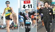 동아마라톤대회에는 이색 참가자들과 특별한 사연을 가진 참가자들이 대거 참석해 즐거움을 더했다. ○ 곤룡포 입고… 여장하고… 요리사 복장을 하고 참석한 일식집 주방장 김여상 씨(57)는 “제 직업이 자랑스러워 마라톤을 하며 ‘내가 요리사다’라고 알리고 싶었다”고 말했다. 정장을 입은 조의행 씨(62·제조업)는 ‘참여 4·11’이라는 피켓을 들고 달렸다. 그는 “4·11총선에 많은 사람이 참여해 제대로 된 사람을 뽑길 바란다”고 했다. 곤룡포(임금이 입던 정복)를 입은 김주현 씨(52), 분홍색 가발과 망사스타킹으로 여장을 한 이정환 씨(51·현대차연구소 연구원) 등은 “마라톤은 축제”라며 사람들이 특이한 복장을 한 자신들을 보고 즐거워하는 것이 기쁘다고 입을 모았다. ‘맨발의 러너’ 이한기 씨(49)는 2시간58분31초를 기록해 서브스리(3시간 이내 기록)를 달성했다. 이 씨는 굳은살이 잔뜩 박인 발을 들어 보이며 “맨발로 3시간 벽을 깬 것은 처음”이라며 흥분을 감추지 못했다.○ 마라톤은 사연을 싣고 오류고 3학년 담임교사 구자형 씨(51)는 ‘미래 경찰청장 ○○○’ 등 제자들의 염원이 빼곡히 적힌 조끼를 입고 참가했다. 그는 “전국 고3 학생들 모두가 마라톤 선수처럼 끝까지 최선을 다하길 바란다”고 했다. 특허청 마라톤동호회는 회원 74명이 참가해 51명이 완주했다. 완주에 성공한 이수원 특허청장(57)은 “이번 대회에 참가한 회원 모두 ‘희망 저금통’을 모아 동아일보가 후원하는 에티오피아 희망프로젝트에 기부할 것”이라고 했다. 이승수 씨(58) 가족은 4형제가 참가해 모두 완주했다. 이 씨는 “극한의 운동을 함께하니 서로를 점점 더 아끼게 된다”며 우애를 과시했다.○ 119 통신봉사단 10년째 봉사 오전 8시 8분 마스터스 선수 2만여 명이 서울시청 앞 서울광장 옆을 통과하자 쌍용차, 한진중공업 등의 해고자들로 구성된 ‘정리해고, 비정규직 없는 세상을 위한 희망뚜벅이’ 회원 6, 7명이 기습 시위를 벌였다. 이들은 수차례 대열 진입을 시도하다 경찰과 한때 몸싸움을 벌이기도 했다. 한편 119재난통신봉사단은 10년째 대회에 참가해 응급 지원 봉사를 했다.손효주 기자 hjson@donga.com 조건희 기자 becom@donga.com ○특별취재반▽스포츠레저부안영식 부장, 이원홍 황태훈 김종석 양종구 차장, 이승건 이헌재 이종석 유근형 정윤철 조동주 기자▽사회부박진우 손효주 조건희 김준일 서동일 송금한 전주영 권기범 기자 ▽사진부김동주 신원건 차장, 원대연 박영대 최혁중 김재명 홍진환 장승윤 양회성 기자▽스포츠동아전영희 김민성 권현진 기자▽채널A김동욱 한일웅 기자}
