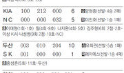 3할 타율은 수준급 타자냐 아니냐를 구분하는 기준이다. 그런데 28일 KIA와의 경기 전까지 두산의 팀 타율은 무려 0.307이나 됐다. 팀 자체가 수준급 타자인 셈이다. 오재원과 민병헌을 비롯해 규정 타석을 채우고도 3할 이상을 치는 타자가 7명이나 됐다. 뜨겁게 달아오른 두산 방망이가 28일 KIA와의 광주경기에서 또 하나의 신기록을 세웠다. 두산은 이날 KIA전에서 13개의 안타를 몰아쳐 13경기 연속 10안타 이상을 기록했다. 이는 2000년 자신들이 세운 12경기 연속 두 자릿수 안타 기록을 경신한 것이다. 두산 타선은 3-6으로 뒤진 9회초 이원석과 홍성흔의 홈런을 포함해 7개의 안타를 집중시키며 대거 7득점해 단숨에 경기를 뒤집었다. 이헌재 기자 uni@donga.com}