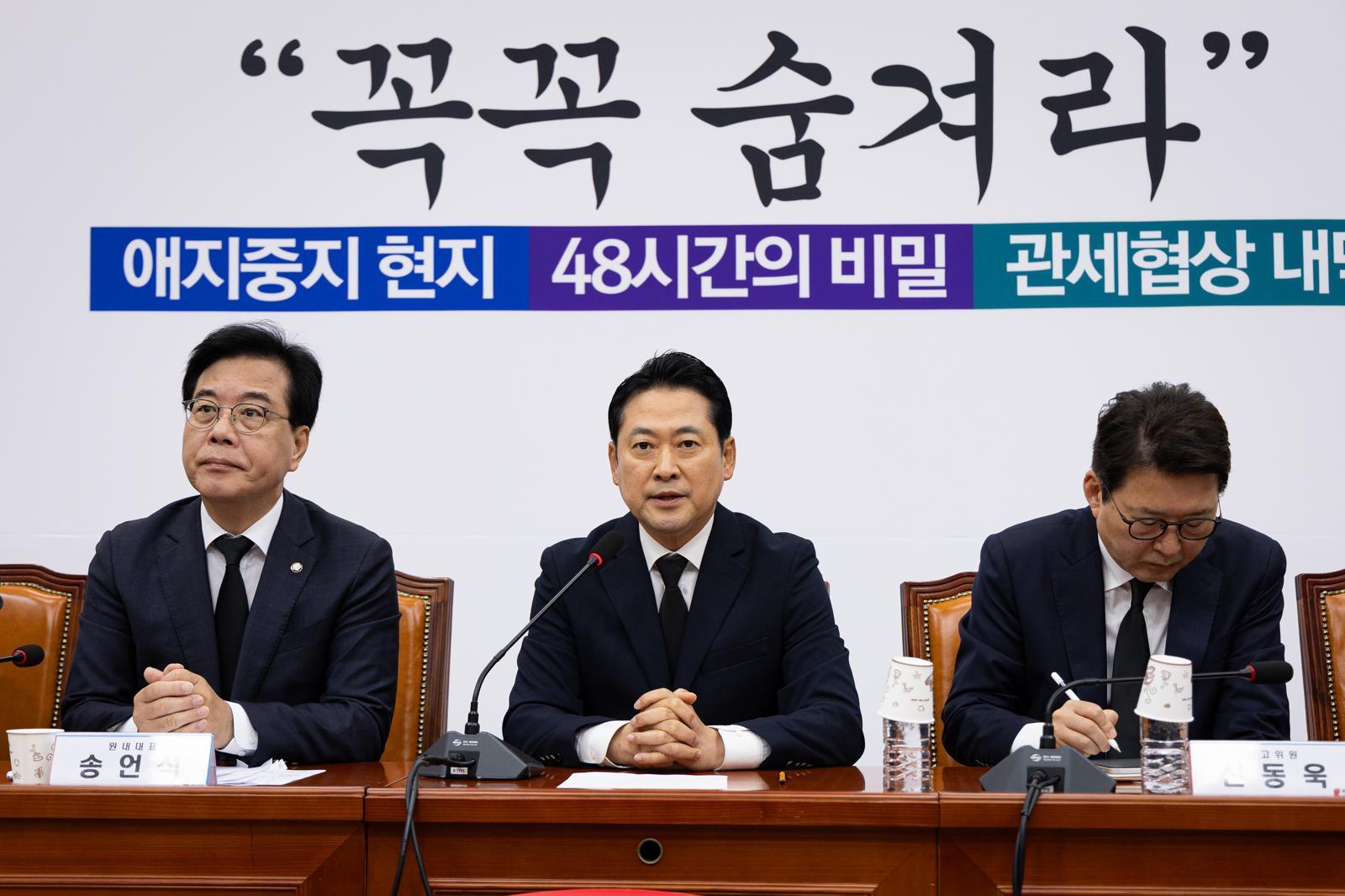 국민의힘은 이재명 정부의 첫 국정감사가 시작되는 13일 “민중기 특별검사, 김현지 (대통령실)제1부속실장, 봉욱 민정수석을 국정감사장에 반드시 세울 것”이라고 밝혔다. 또 김현지 실장 관련 제보센터와 특검 강압수사 관련 국민제보센터도 오픈할 예정이라고 했다. 국민의힘 장동혁 대표는 이날 오전 국회에서 열린 당 최고위원회의에서 “국민의힘은 이번 국정감사를 통해서 정치권력의 폭주, 행정권력의 은폐, 사법권력의 남용을 철저히 파헤치겠다”며 이같이 말했다. 국민의힘 지도부는 검은색 정장과 넥타이 차림의 상복을 맞춰 입고 자리했다. 모든 상임위원회가 ‘민생 싸움터’라는 각오로 한 달가량 이어지는 국정감사에 임하겠다는 계획이다. 장 대표는 “정치권력의 폭주를 국민들께 알리기 위해 민중기 특검을 반드시 국정감사장에 세워야 할 것”이라며 “(숨진 양평) 공무원의 진술서에 나와 있는 그 심리적 압박감과 강압, 회유, 그것이 특검에게는 기본값이기 때문에 강압과 회유가 없었다고 밝힌 것 같다”고 했다. 국민의힘 소속 국회 법제사법위원들은 전날 기자회견을 열어 민중기 특검을 국정감사 증인으로 추가 신청했다고 밝혔다. 이어 “행정권력의 은폐를 밝히기 위해서 김현지 실장을 국정감사장에 반드시 세워야 할 것”이라며 “숨으면 숨을수록 의혹은 더 커지고 있다”고 했다. 다음 달 6일 열리는 운영위원회의 대통령실 국감에서 김 실장을 기관 증인으로 반드시 불러야 한다는 것이다. 장 대표는 또 “이진숙 전 방통위원장 체포와 관련해 사법권력의 남용을 밝히기 위해 봉욱 민정수석도 국정감사장에 반드시 세워야 할 것”이라고 말했다. 장 대표는 “민주당은 대법원장을 내쫓으려고 국감 증인으로 세우고 출석하지 않으면 동행명령장을 발부하고 고소하겠다고 하고 있다”며 “이성과 양심을 땅에 묻고 제사 지낸 지 오래인 것 같다”고 했다. 그러면서 “민생은 뒷전, 광내기만 진심인 정권을 국민이 직접 심판하실 것”이라고 했다. 그간 국감에서 대법원장은 법사위원장의 양해를 얻어 출석 직후 곧바로 자리를 옮기는 게 관례였다. 하지만 민주당은 조 대법원장을 상대로 직접 질의하겠다는 방침이다.국민의힘 송언석 원내대표는 “조 대법원장이 국감 증인으로 나와야 한다면 이 대통령도 대통령실 국감에 나와야 할 것이고, 우원식 국회의장도 국회사무처 증인으로 나와야 한다”고 목소리를 높였다. 이어 “조 대법원장을 굳이 증인으로 부르겠다는 속셈은 이 대통령 공직선거법 위반 재판의 유죄 파기환송 판결에 대해 그 책임을 국감장에서 묻겠다는 것”이라며 “이재명 무죄 조작을 위한 민주당의 노골적인 재판 개입으로밖에 볼 수 없다”고 했다. 조혜선 기자 hs87cho@donga.com}