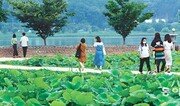 18일 경기 양평군 양서면 두물머리 연못에 연잎이 떠 있다. 마스크를 쓴 시민들이 일대를 산책하며 평일 오후를 한가롭게 보내고 있다. 양평=최혁중 기자 sajinman@donga.com}