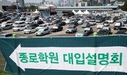 21일 종로학원의 대학입시 설명회가 열린 서울 서초구 양재동의 한 대형 주차장에 차들이 줄지어 서 있다. 이날 입시설명회는 참석자가 차에서 내리지 않는 ‘드라이브스루’ 방식으로 진행됐다.최혁중 기자 sajinman@donga.com}