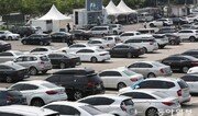 30도가 넘는 한여름 무더위 속에서 야외 ‘드라이브 스루’ 입시설명회가 열렸다. 21일 종로학원은 코로나19로 감염 위험성이 상대적으로 낮은 실내가 아닌 서울 서초구의 대형 야외 주차장에서 입시설명회를 열었다. 이 주차장은 동시 수용차량대수가 1200대 규모로 동승자 포함시 1회 행사에 약 3000여 명 정도가 참석할 수 있다고 종로학원은 설명했다. 올해에는 코로나19로 사실상 모든 입시설명회가 중단됐었고 특히 18일 평가원의 모의고사가 진행된 직후에 열리는 행사로 고3, 재수생들의 관심이 뜨거웠다. 행사에 참가한 학부모들은 뜨거운 햇빛을 가리기 위한 차단막을 차량 앞유리에 부착하고 실내에서 라디오로 들려오는 강사의 설명에 귀를 기울였다. 종로학원측은 행사 시작 전부터 대형 전광판을 통해 ‘차량 밖으로 나올 경우 마스크 착용 필수’, ‘화장실 이동시 마스크 착용’, ‘긴급사항 발생시 차량 비상등 사용’ 등의 메시지를 게시했다. 또 비상상황에 대비해 의료진과 구급차까지 대기하며 행사를 치렀다. 최혁중 기자 sajinman@donga.com}