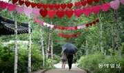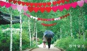 바람이 살랑살랑, 비가 부술부술... 궂은 날씨지만 산책길에 장식된 '사랑의 하트' 가랜더가 우리를 반겨줍니다. 언제 끝날지 모를 두려움으로 우울한 나날이지만 사랑하는 사람과의 산책은 언제나 설레입니다.경기 가평 아침고요수목원에서 최혁중 기자 sajinman@donga.com}