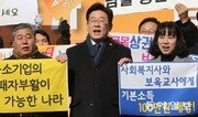 이재명 경기 성남시장(53)이 23일 대선 출사표를 냈다. 슬로건은 “아무도 억울한 사람이 없는 공정한 나라”였다. 이 시장은 이날 경기 성남시 상대원공단의 ㈜오리엔트시계 공장에서 열린 대선 출마 기자회견에서 “청렴 강직한 대통령, 약자를 위한 대통령이 되겠다”라고 밝혔다. 이 공장은 이 시장이 15세이던 1979년부터 2년간 소년공으로 일했던 곳이다. 그는 “초등학교를 졸업한 1976년 봄부터 깔끔한 교복 대신 기름때 묻은 작업복을 걸친 채 어머니 손을 잡고 공장으로 향했다”라며 “그 소년 노동자가 오늘 바로 그 참혹한 기억의 공장에서 대한민국 최초의 노동자 출신 대통령이 되려고 한다”라고 역설했다. 이 시장은 이날 출마 선언에서 ‘선명성’을 특히 강조했다. 탄핵 정국이 소강 국면에 접어들면서 지지율이 하락세를 보인 것에 대한 대응 전략이다. 이 시장은 “경제를 해치고 안보에 도움 안 되는 사드(THAAD·고고도미사일방어체계) 배치는 철회시켜야 한다”라며 “국가 간 합의의 최소 요건도 못 갖춘 위안부 합의는 애초부터 무효이며, 한일군사정보보호협정은 종료시켜야 한다”라고 주장했다. 최근 구속영장이 기각된 이재용 삼성전자 부회장에 대해서는 “유죄가 확인되면 불법 재산 환수법을 제정해 (재산을) 모두 환수해야 한다”라고 목소리를 높였다. 이어 “이 부회장의 구속을 말할 수 없는 사람은 삼성과 싸울 수도 없는 사람이고, 삼성에 이길 수도 없는 사람”이라며 더불어민주당 문재인 전 대표를 겨냥했다. 이 시장은 대통령이 되면 “29세 이하, 65세 이상 국민과 농어민, 장애인 등 2800만 명에게 연간 100만 원씩 기본 소득을 지급할 계획이다. 국토보유세를 만들어 전 국민에게 연간 30만 원씩 배당하는 토지 배당을 시작할 것”이라고 공약했다. 전날 대선 출마를 선언한 안희정 충남도지사가 “세금을 누구에게 더 나눠 주는 정치는 답이 아니다. 국민은 공짜 밥을 원하지 않는다”라며 비판하자, 이 시장은 복지를 ‘나눠 준다’고 표현한 것에 대해 “민주공화국을 제대로 이해한 것인가. ‘공짜’라고 표현했는데 그건 구태 기득권 보수 세력이 쓰는 말”이라고 반박했다.박성진 기자 psjin@donga.com}
