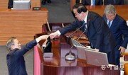 1일 문재인 대통령이 국회 시정연설을 앞두고 이뤄진 사전 환담에선 선거구제 개편과 대통령제 개편을 중심으로 한 권력구조 개편안을 놓고 신경전이 벌어졌다. 문 대통령은 이날 국회의장 접견실에서 문희상 국회의장 등 5부 요인, 여야 지도부와 15분가량 사전 환담을 가졌다. 민주평화당 정동영 대표는 “7개 정당이 선거제도 개혁을 위해 제2의 촛불을 들었다”며 “(선거제도 개편에) 힘을 실어 달라”며 선거구제 개편을 꺼내들었다. 자유한국당 김성태 원내대표도 “작년 5월 대통령께서 ‘국회가 선거구제를 개편하면 국가 권력구조도 바꿀 수 있다’고 했다”며 “다당제로의 변화 과정에서 권력구조도 바꾸는 특단의 의지를 보여 달라”고 했다. 선거구제 개편과 함께 분권형 대통령제로 권력구조도 함께 개편해야 한다고 촉구한 것이다. 문제는 환담을 마친 뒤 일부 야당 측 참석자들이 문 대통령이 권력구조 개편 의지를 보였다고 전하면서 불거졌다. 환담을 마친 정 대표가 “문 대통령이 지금의 대통령제는 (우리나라 정치구도에) 맞지 않는 것 같다고 말했다”고 밝힌 것. 하지만 김의겸 청와대 대변인은 이날 오후 브리핑에 나서 “조금 착오가 있는 것 같다”며 곧바로 해명에 나섰다. 김 대변인은 “‘국가 권력구조도 바꾸는 특단의 의지를 보여 달라’는 정 대표의 언급에 문 대통령은 ‘선거제도 개혁에 대한 국회의 의지에 기대를 걸어보겠다’고 답했을 뿐 권력구조에 대해서는 직접 언급하지 않았다”고 전했다.문병기 기자 weappon@donga.com}