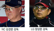 양상문 LG 감독은 최동원과 더불어 1970년대 부산 고교야구를 대표하는 에이스 투수였다. 포수 출신인 김경문 NC 감독은 1982년 프로야구 원년 OB 우승을 이끈 안방마님이었다. 왕년의 명투수와 명포수는 이제 각자의 더그아웃에 서서 한국시리즈행 티켓을 건 치열한 지략 대결을 펼치게 됐다. 21일 막을 올리는 2016 프로야구 플레이오프의 또 하나의 볼거리다. 20일 경남 마산구장에서 열린 미디어데이에서도 양 팀 감독의 특징은 그대로 드러났다. 에이스 허프 대신에 소사를 1차전 선발 투수로 예고한 양 감독은 “(13일 준플레이오프 1차전에 등판한) 소사의 다음 등판일이 하루라도 더 늦어지면 컨디션 조절에 문제가 생길 수 있다. 허프를 1차전에 투입하면 나흘 휴식 뒤 등판이라 이르다”며 마운드 운용에 각별한 신경을 썼다. 또 준플레이오프 때부터 고수해온 4선발 체제를 이어갈 뜻을 밝혔다. “마산구장에 바람이 많이 분다. 날씨가 승부의 열쇠가 될 것”이라는 김 감독의 말에서는 경기 전체의 큰 그림을 봐야 하는 포수로서의 특징이 그대로 묻어났다. 김 감독은 경험의 중요성을 부각하며 2013년부터 팀의 에이스 역할을 맡아온 해커를 1차전 선발 투수로 내세웠다. 양 팀 포수들의 자존심 대결도 눈길을 끌었다. LG에서 프로에 데뷔한 NC의 포수 김태군은 “이런 영광스러운 자리에 초대받을 수 있도록 프로에 입단시켜준 LG 관계자에게 감사를 전한다”며 너스레를 떤 뒤 “강남이가 내 얼굴을 보면 집중이 된다며 자극했는데 좋은 안방전쟁을 해 보겠다”고 각오를 밝혔다. 김태군과 LG 포수 유강남은 2011년과 2012년 LG에서 한솥밥을 먹었다. 이에 유강남은 “원래부터 안방경쟁에서 승부를 가를 계획이었다”며 맞받아쳤다. 박민우, 이종욱 등 NC의 빠른 주자에 대해서는 “우리 투수들의 퀵 모션이 좋기 때문에 베이스 위에 공만 얹는다는 생각으로 하면 막아낼 수 있을 것”이라며 자신감을 보였다. 상대의 도루를 책임지고 막아야 하는 포수답게 김태군과 유강남은 상대팀의 주요 경계 대상으로 상위 타순에 주로 배치되는 LG 김용의와 NC 박민우를 꼽았다. 이날 참석자들은 전부 이번 시리즈가 4차전까지 갈 것이라고 예상했다. 한편 김경문 감독은 음주운전 징계로 1차전 출전이 불가능한 외국인 타자 테임즈를 2차전부터는 기용할 뜻을 밝혔다. 테임즈는 미디어데이 뒤 사과 기자회견을 했다. 창원=강홍구 windup@donga.com·황규인 기자}