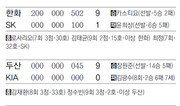 나만 진 건 아니라서 그나마 덜 쓰라렸다. 가을야구 티켓을 두고 치열하게 경쟁 중인 4위 KIA, 5위 LG, 6위 SK가 28일 모두 패했다. 패배가 가장 아쉬웠던 건 KIA였다. 8회 1사까지 안타를 하나도 내주지 않으며 선두 두산 타선을 꽁꽁 묶었던 KIA는 8회에 집중 안타를 허용하며 무릎을 꿇었다. 두산 오재원은 전날 경기에서 자신을 향해 돌발 견제구를 던져 논란을 일으켰던 KIA 마무리투수 임창용의 초구를 공략해 3루 주자를 불러들이는 결승 적시타를 쳤다. 다음 타자인 두산 김재환은 임창용을 상대로 승부에 쐐기를 박는 3점 홈런을 쏘아 올렸다. 시즌 33호째. 임창용은 아웃카운트 하나만을 잡은 채 마운드에서 내려왔다. 승기를 잡은 두산은 9회 정수빈의 3점 홈런 등을 추가하며 9-0으로 크게 이겼다. LG는 최하위 kt에 덜미를 잡혔다. 3연승이 중단된 것은 물론이고 최하위 팀에 져 아픔이 더 컸다. kt는 타선의 집중력을 바탕으로 5회에 4점, 6회에 6점을 뽑아내며 LG의 추격 의지를 꺾었다. kt 선발 투수 주권은 5와 3분의 1이닝 동안 4피안타 1실점으로 팀 승리의 디딤돌을 놓았다. SK는 7위 한화에 1-9로 패하며 3연패에 빠졌다. 전날 패배로 4위에서 6위로 내려앉은 SK는 이날도 승리를 챙기지 못하며 7위 한화와 2.5경기 차가 됐다. 한화의 외국인 타자 로사리오는 이날 5타수 2안타(1홈런) 4타점을 기록하며 역대 56번째로 한 시즌 30홈런-100타점의 고지를 넘었다. 선발 카스티요도 6과 3분의 2이닝 동안 4피안타(1홈런) 7탈삼진, 1실점으로 호투했다. 한편 롯데와 삼성의 대구 경기, 넥센과 NC의 마산 경기는 비로 취소됐다. 강홍구 기자 windup@donga.com}